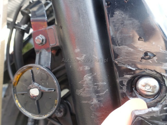 | Condition_and_Equipment | Schlüssel Nur ein Schlüssel vorhanden. --- Front Schutzblech vorne defekt. Gabel beschädigt. Lenker verbogen. Weitere Beschädigungen Kotflügel Vorne — Gabel Vorne — Verkleidung vorne Rechts — Kühler — Lenker — Hebel + Rückspiegel + Endkappe — Gehäuse — Platine — Auspuff. |