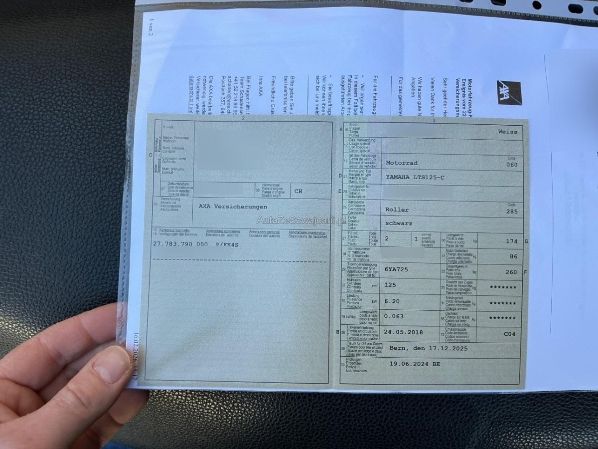 | Fahrzeugausweis | Vorhanden |
