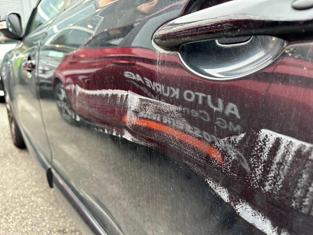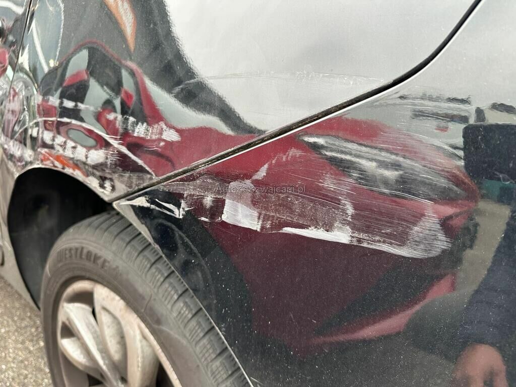 Türe hinten, Seitenwand, Felge und Stossfänger Ecke beschädigt.