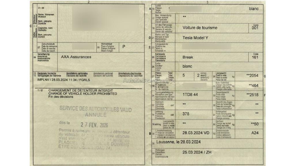 | Fahrzeugausweis | Vorhanden |