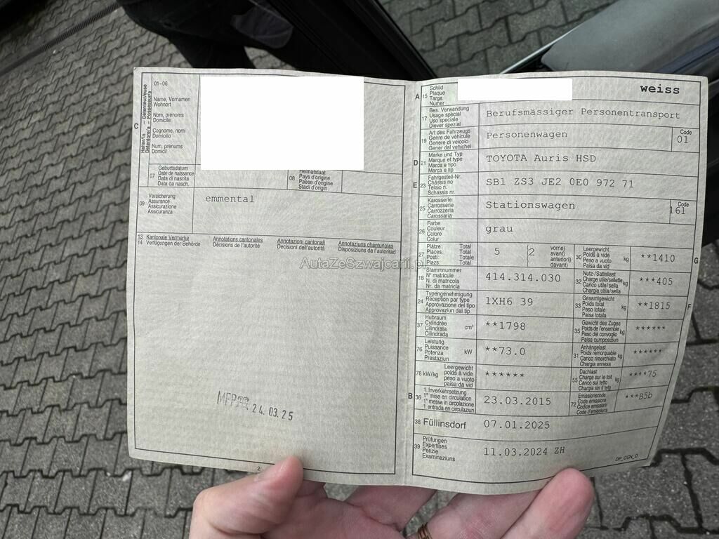 | Typ | Auris Touring Sports 1.8 HSD |