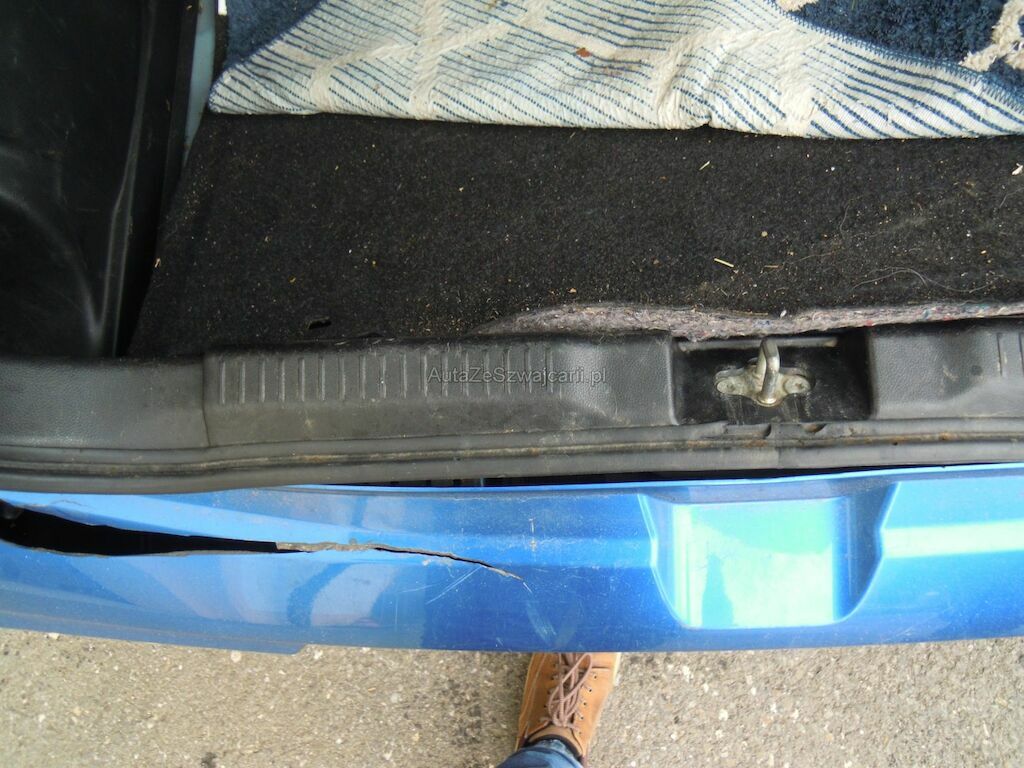 Dommage zone arrière: Pare-chocs, feu gauche cassés, tôle de jupe, renfort seuil de coffre enfoncés, hayon déformé, sortie échappement droite pliée.