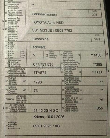 | Typ | Auris 1.8 HSD Linea Luna |
