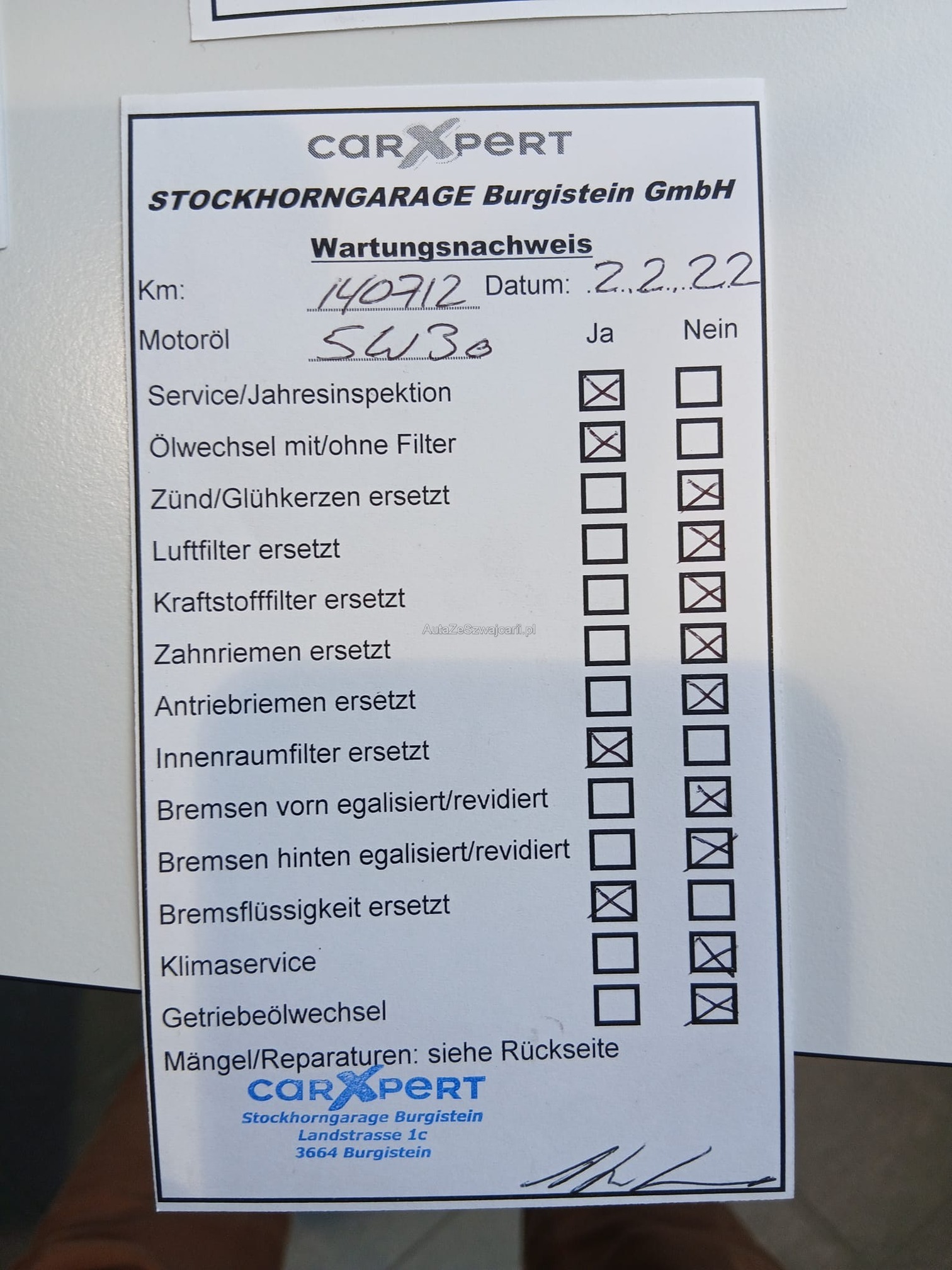 | Zahnriemen gewechselt | No |