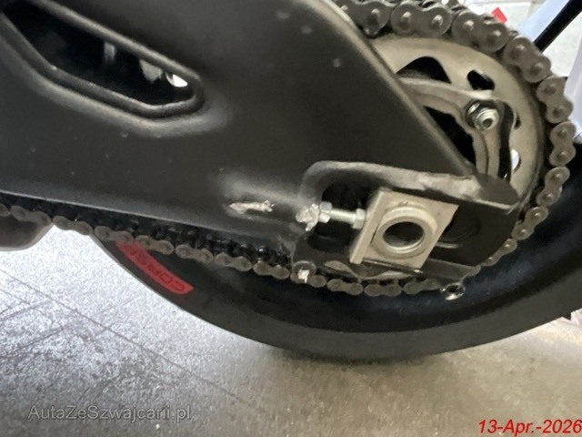 | Schadensbeschreibung | Beschreibung der Schäden: Die Felge hinten, die Hinterachsschwinge, die Fussrasten links, der Schalthelbel, der Auspuff komplett, der Motordeckel, der Wasserkühler, der Ölkühler sind deformiert. Die Seitenverkleidungen vorne rechts und links, der Rückspiegel, der Bremshebel haben Kratzer. |