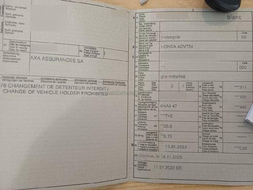 | Fahrzeugausweis | Vorhanden |