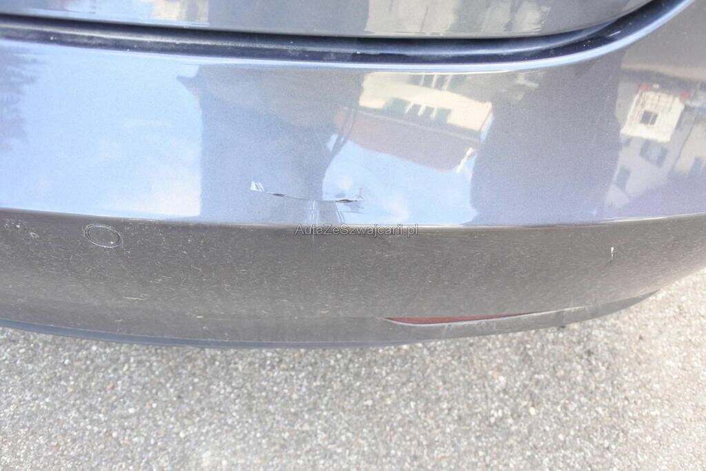 Die Stossstange mit Sensor und Befestigung, die Rückleuchten, die Seitenwand, das Radhaus und das Heckblech sind eingedrückt. Die Radaufhängung hinten rechts ist verformt.