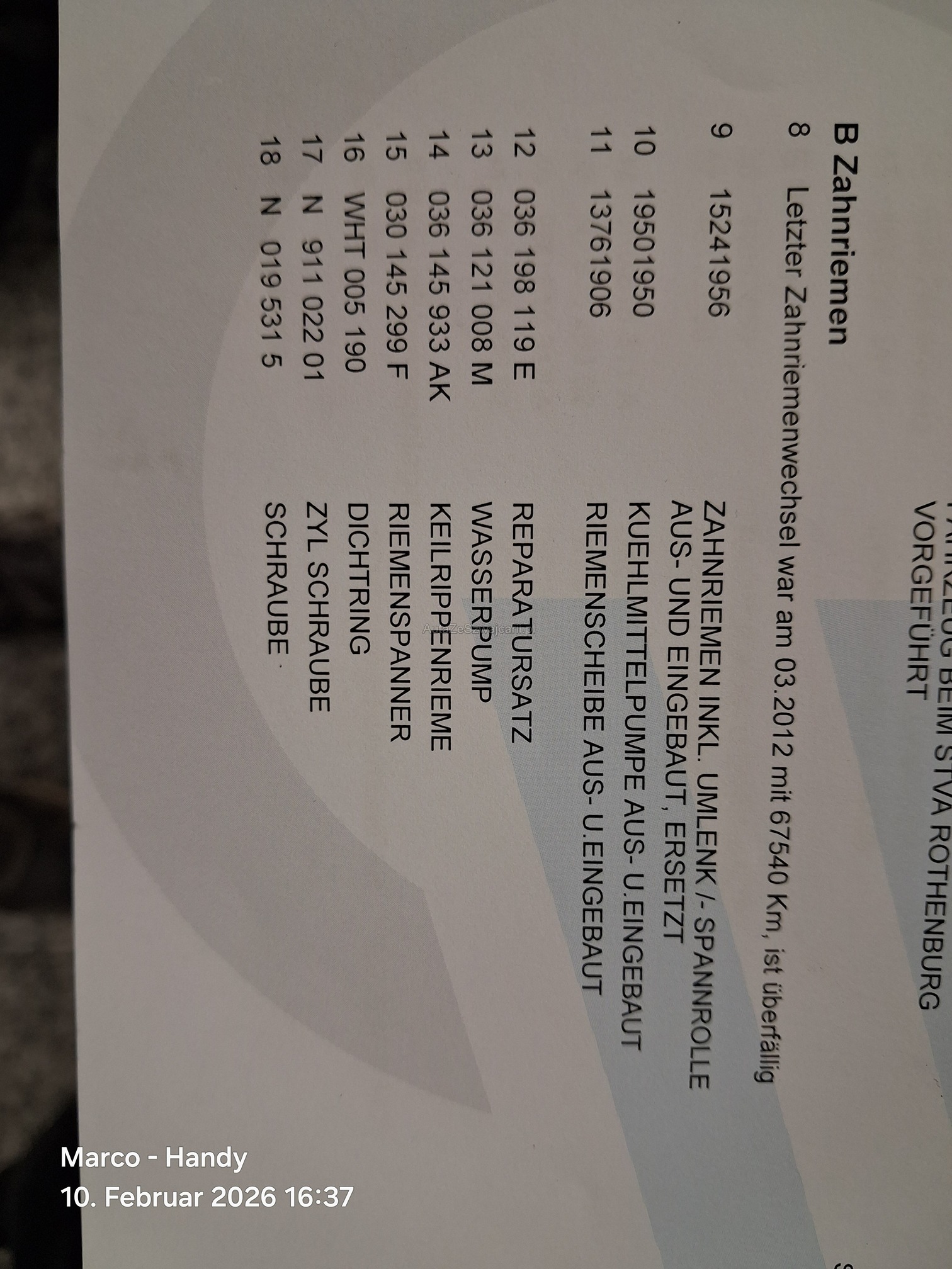 | Zahnriemen gewechselt | No |