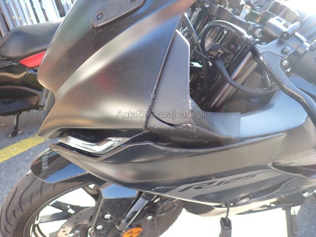 | Condition_and_Equipment | Links Linke Seite beschädigt. Verschalung oben links verkratzt. Verschalung unten links verkratzt. Rechts Rechte Seite beschädigt. Front Lenker verbogen. Heck Auspufftopf nur verkratzt. Schwinge hinten beschädigt. Verschalung hinten verkratzt. Rahmen Rahmen nur verkratzt. --- Serienaustattung Garantie 5 Jahre |