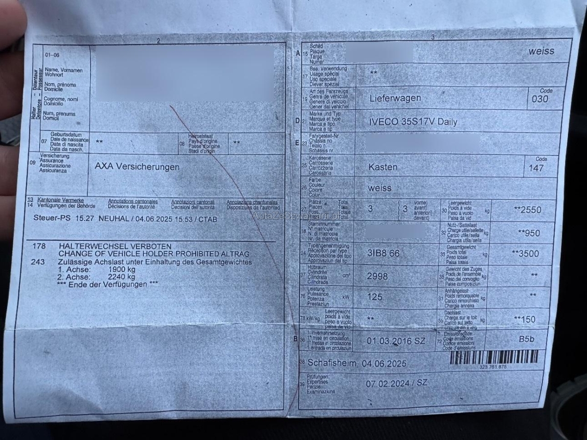 | Fahrzeugausweis | Vorhanden |