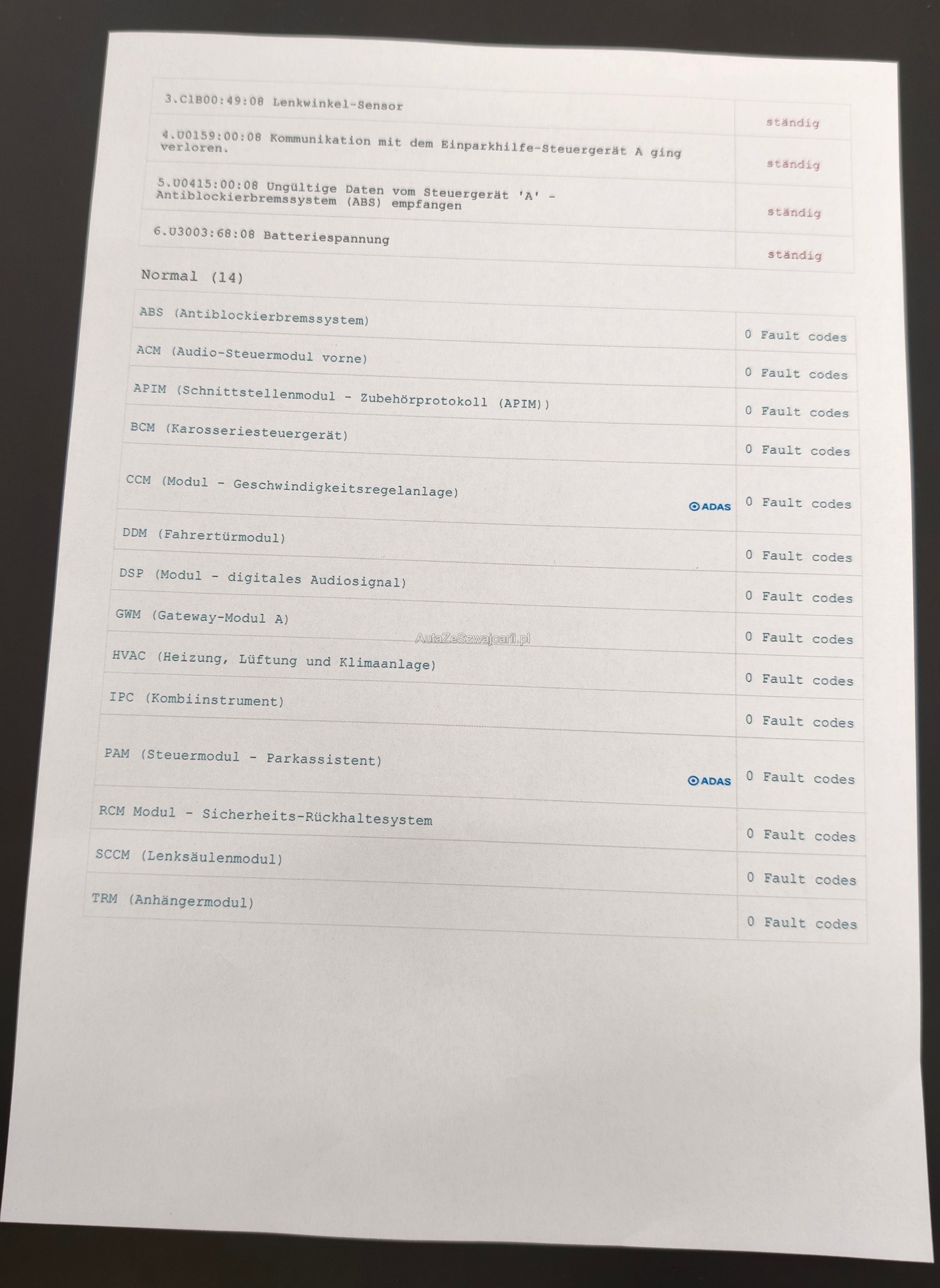 | Keine Warnleuchten | Yes |