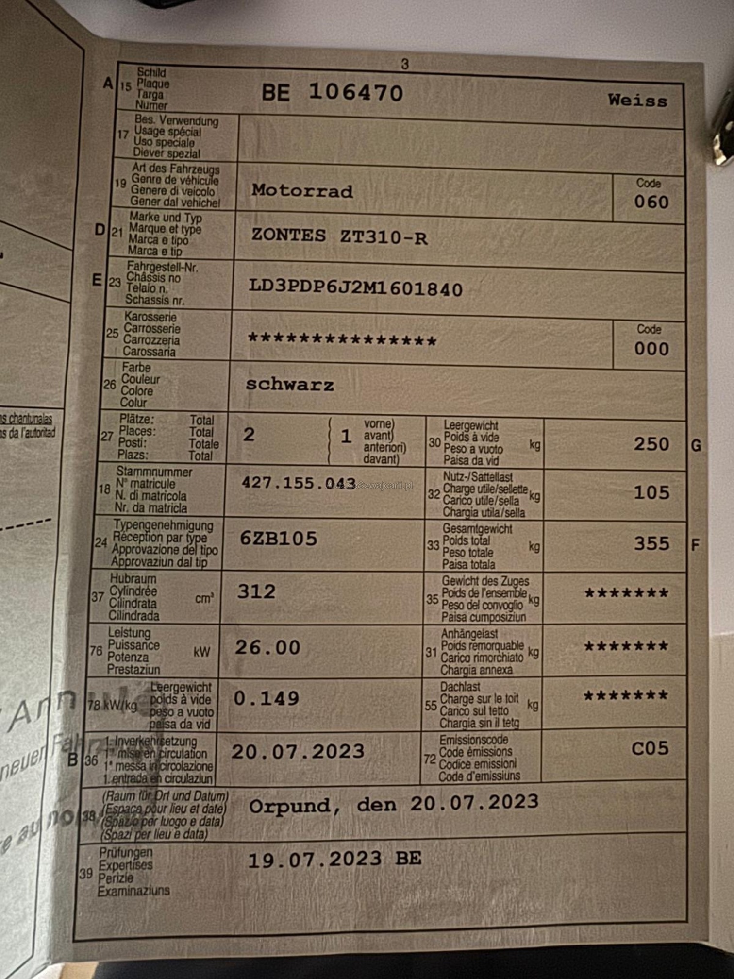 | Kommentar | ‼️Achtung Kein Audi‼️ Konnte nur Zontes nicht auswählen Zum Verkauf steht eine gepflegte ZONTES ZT310-R Details: • Modell: ZONTES ZT310-R • Hubraum: 312 cm³ • Leistung: 26 kW • Farbe: Schwarz • Erstzulassung: 20.07.2023 • Kilometerstand: ca. 9.000 km • Sitzplätze: 2 |