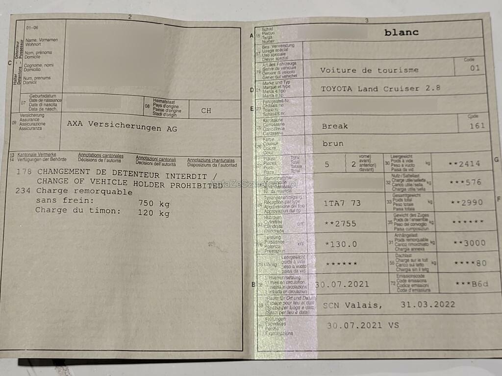 | Fahrzeugausweis | Vorhanden |