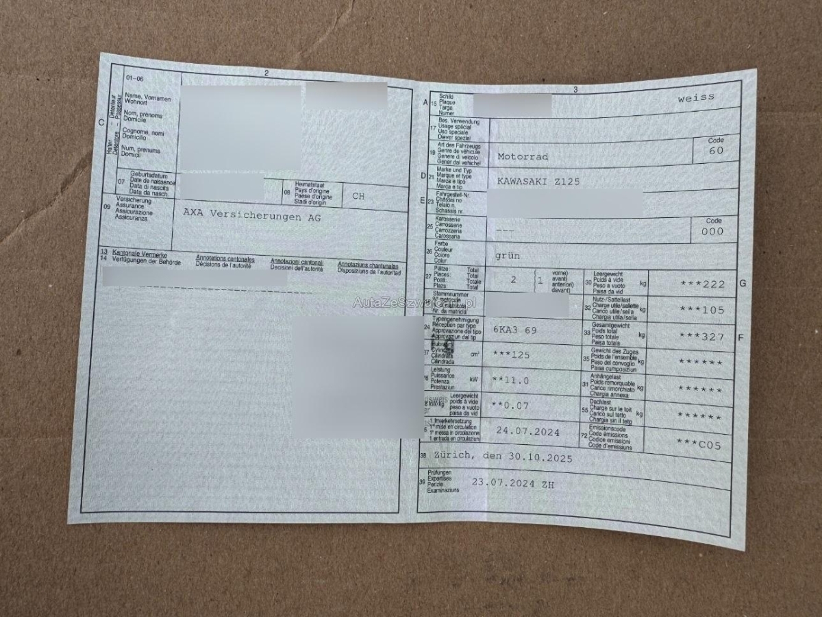 | Fahrzeugausweis | Vorhanden |