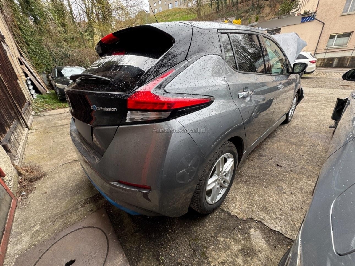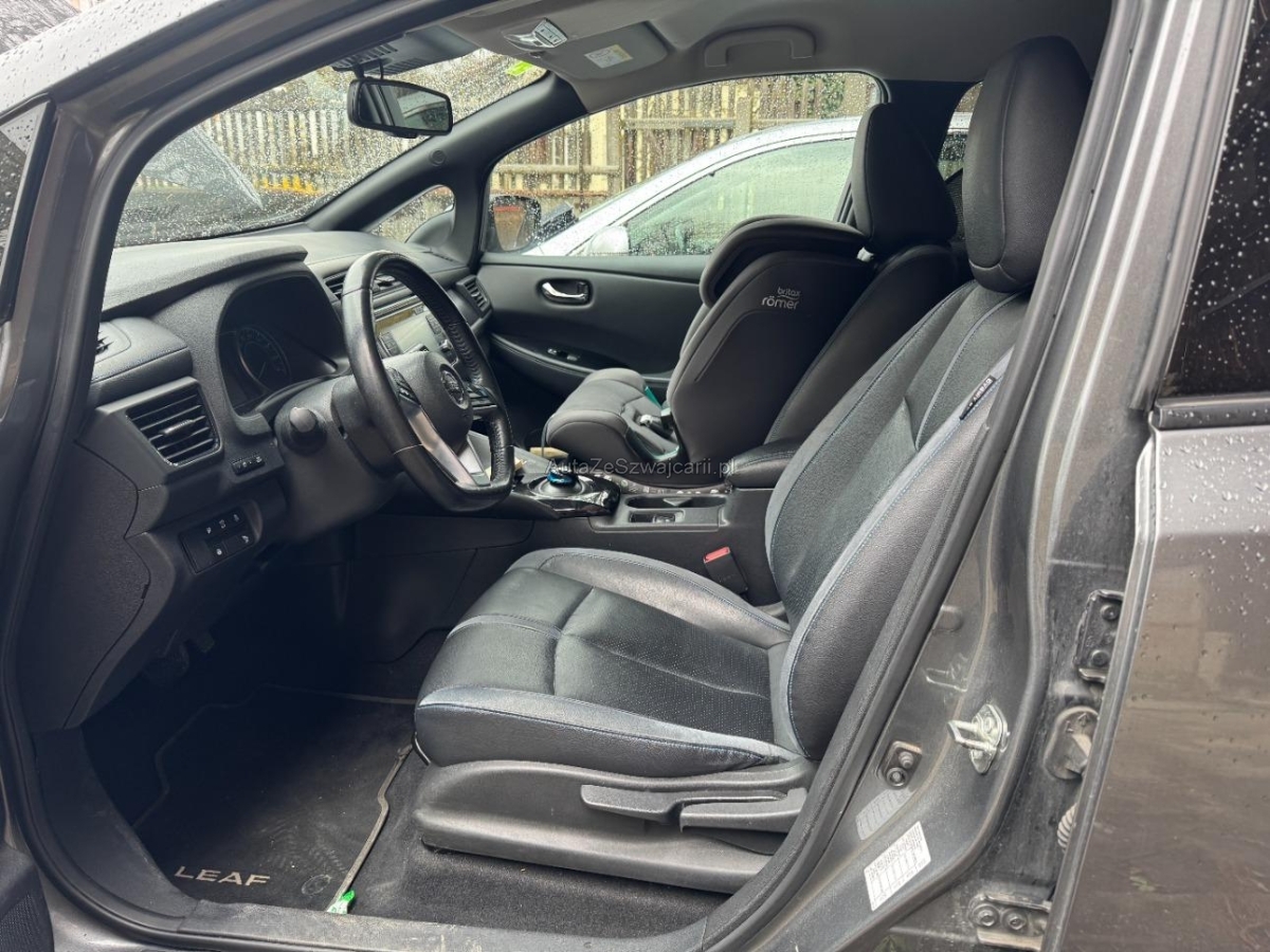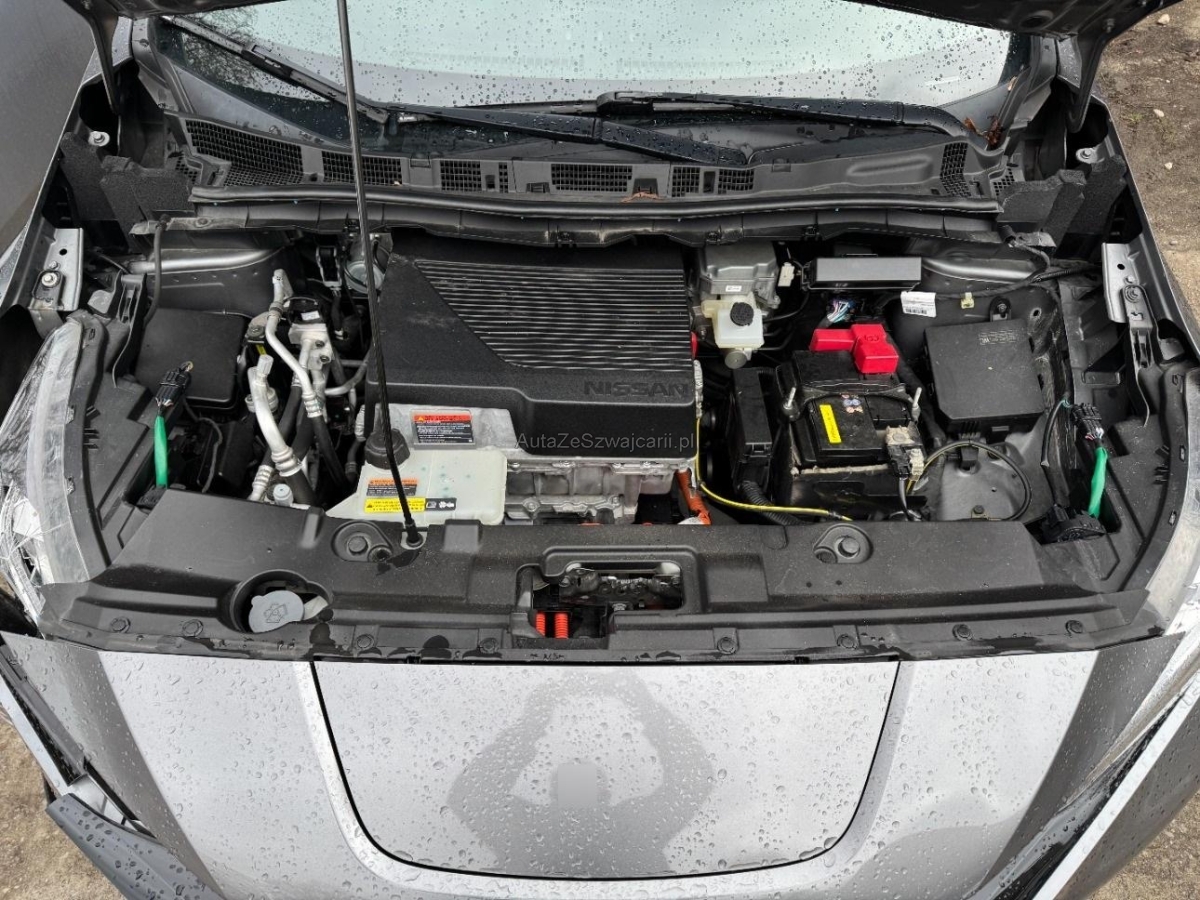 | Serienausstattung | Pollenfilter (Staubfilter), Mittelkonsole mit Ablagefach, Akustisches Warnsignal bei nicht angelegtem Sicherheitsgurt, Lederlenkrad, EVSE-Kabel (Mode2-Sicherheitssystem) mit Haushalts-Stecker, Reserverad, Assistenzpaket inklusive Stau-und Notfallassistent und Side Assist, Assist: Start-/Stopp-Automatik, LED Scheinwerfer, Lenkrad: Lenkrad beheizbar, Mode 3 Ladekabel Typ 1 / Typ 2, Scheibenwischer vorne und hinten mit Intervall, Beide Make up-Spiegel beleuchtet, Ladeanschluss für Wechselstrom bis 6.6kW, Drittes Bremslicht, Assist: Regensensor für Scheibenwischer vorne, Elektrische Fensterheber vorne + hinten, Bremsassistent (BAS), Nebelscheinwerfer, Assist: Warnblinkautomatik bei Vollbremsung, Media: Connected / Android Auto / Apple CarPlay, Aussenspiegel rechts und links beheizt, elektrisch verstell- / und einklappbar, Räder: 4 Leichtmetallfelgen 17J mit Pneu, Berganfahrhilfe, Querverkehrsassistent hinten, Wegfahrsperre elektronisch, Sitze: Fahrersitz höhenverstellbar, Bluetooth Freisprecheinrichtung, Ambientebeleuchtung, INTELLIGENT KEY Entriegelungsmöglichkeit der Abdeckung der Ladeanschlüsse, Keyless Entry und Starten des Motors, Notbremsassistent, Zentralverriegelung mit Fernbedienung, Licht: LED-Tagfahrlicht, Verdunkelte Seitenscheiben ab B-Säule, Kopfstützen hinten höhenverstellbar, Sprachsteuerung, ABS, EBD elektronische Bremskraftverteilung, Frontscheibe Wärme- und UV-absorbierend, Servolenkung, Elektronische Parkbremse, Aussentemperaturanzeige, Sitze: Rücksitzbank asymetrisch geteilt umlegbar, Dachantenne, Assist: Einparkhilfe vorne und hinten, Velours-/Leder-Ausstattung, Ladeanschluss für Gleichstrom bis 50kW, Audiosystem, Ablagen in den Türen, Innenspiegel automatisch abblendbar, Sitze: ISOFIX-Befestigungspunkte für Kindersitz an den äusseren Rücksitzen, Adaptiver Tempomat ACC, Lenkrad: Lenkradfernbedienung, Akustisches Annäherungssignal intermittierend, nach vorne abstrahlend, bis 30 km/h, Licht: Fernlicht-Assistent, Klimatisierungsautomatik, Airbag: Airbag Fahrer und Beifahrer, Cupholder vorne und hinten, Steckdose 12V, Totwinkel-Assistent, Umgebungsausleuchtung (Follow me home), Verkehrszeichenerkennung, Nebelschlussleuchte, Assist: Spurhalteassistent, Kofferraumbeleuchtung, Blinker in Aussenspiegel, 3-Punkt-Sicherheitsgurte auf allen Plätzen, Info-Display, Gurtstraffer mit Gurtkraftbegrenzer vorne, Heckscheibenheizung, Beleuchtetes Handschuhfach, LED Heckleuchten, NissanConnect EV: Multimedia System, EV Telematiksystem, NissanConnect EV App, Müdigkeitserkennung, Lenkrad höhenverstellbar, Seitenairbags vorne und Kopfairbags vorne und hinten, Kopfstützen vorne höhenverstellbar, Licht- und Regensensor, Aussenspiegel in Wagenfarbe, Kartentaschen an den Rückenlehnen, TPMS Reifendrucküberwachungssystem, Elektronisches Stabilitäts-Programm (ESP), Türaussengriffe in Chromoptik, Media: AROUND VIEW MONITOR für 360° Rundumsicht, Sitzheizung vorne und hinten, Stufenloser Automat, Assist: Fussgängererkennung, Start-/Stop-Knopf |
