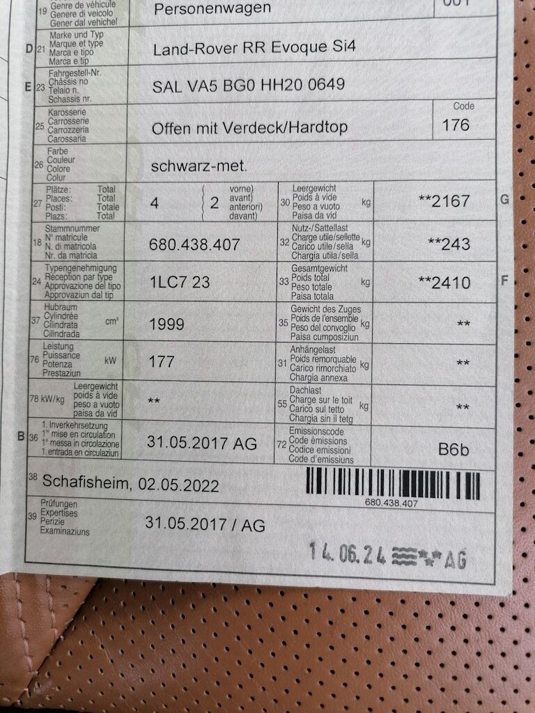 | Typ | Range Rover Evoque2.0 SI4 HSE Dynamic Cabrio |