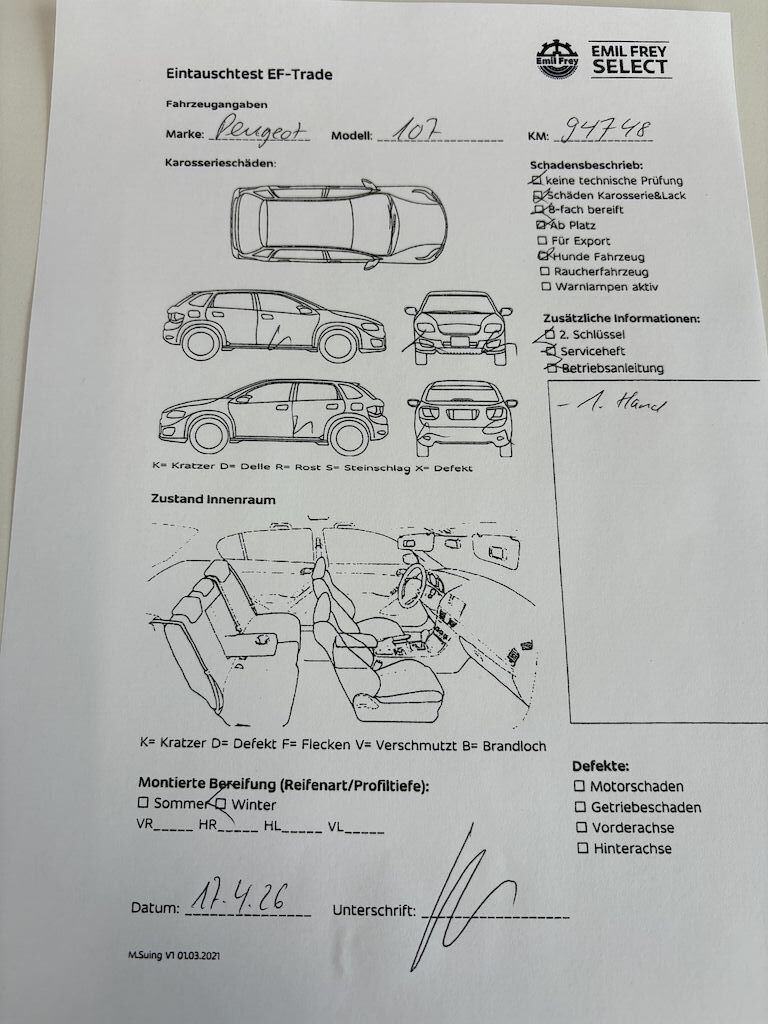 Keine technische Prüfung (Werkstatttest) vorgenommen
