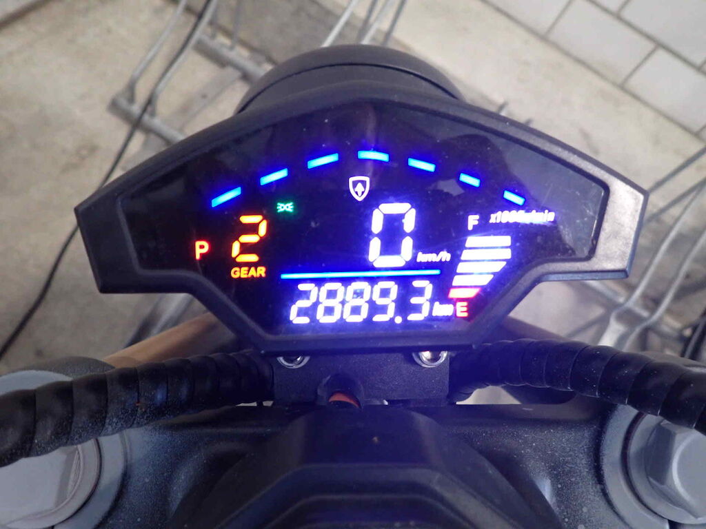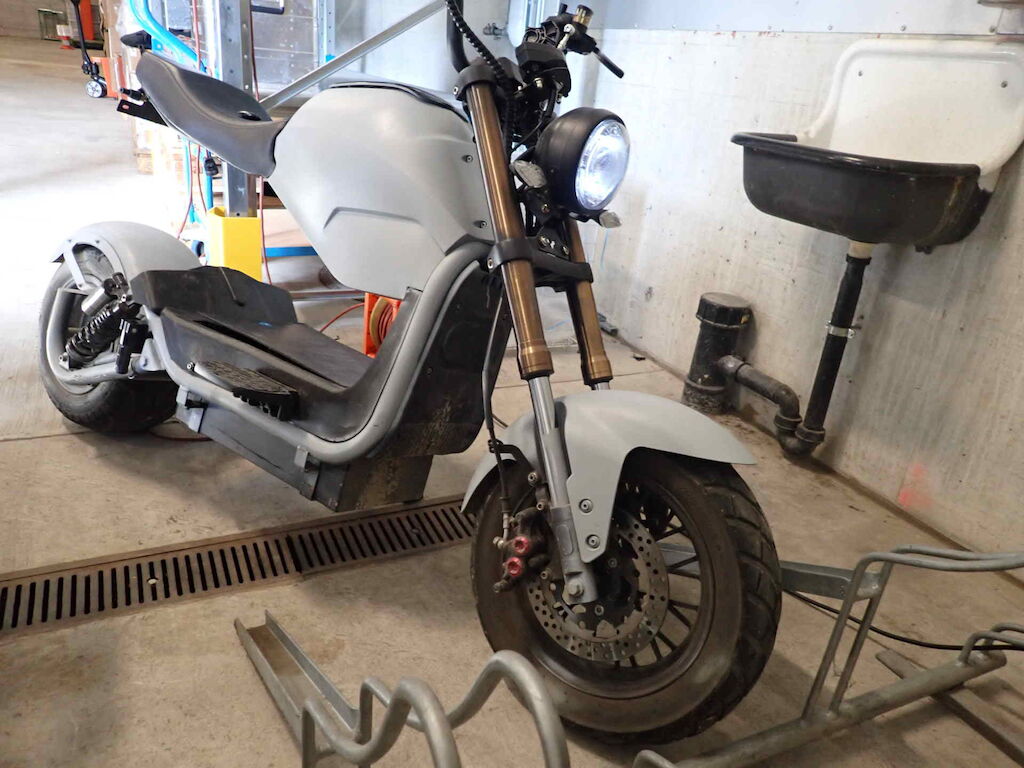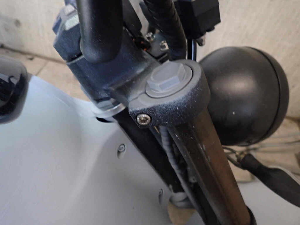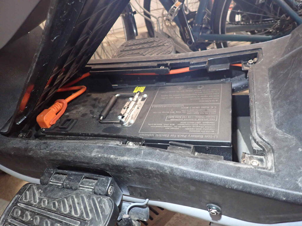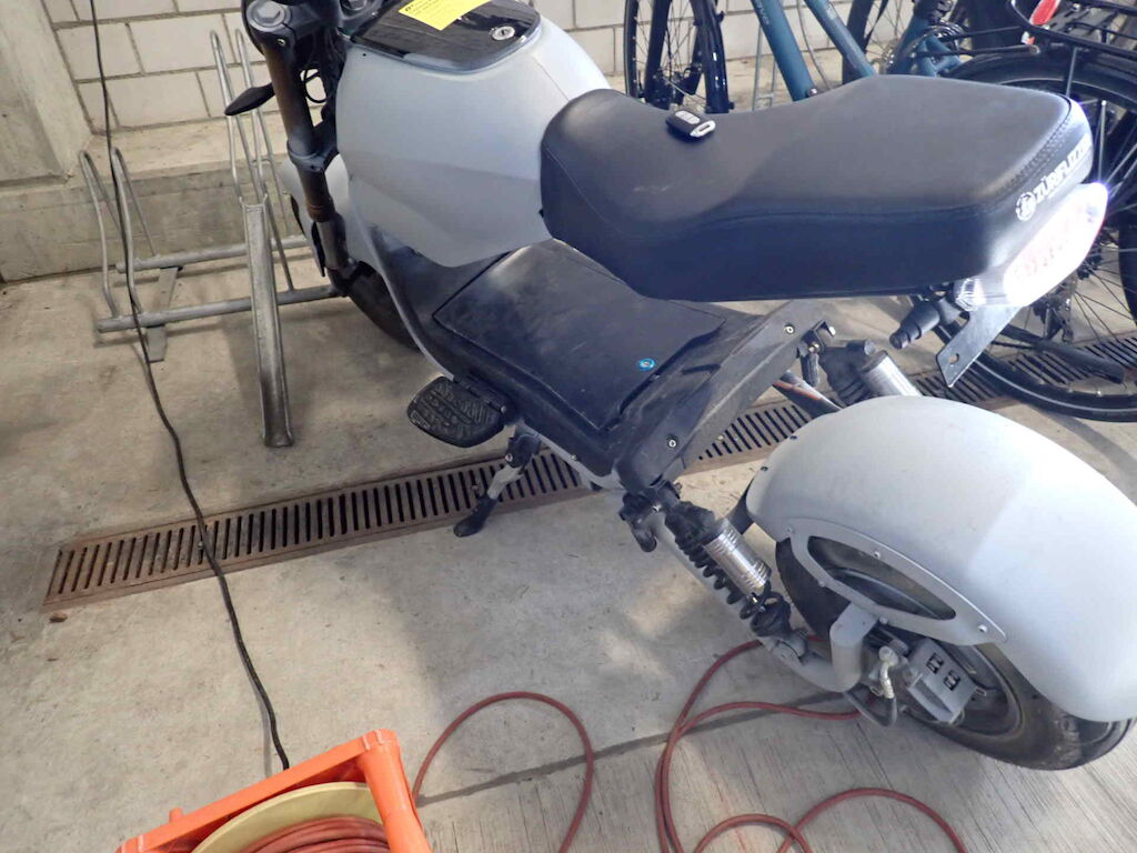 Einbruchspuren an den Schlösser Zündschloss, Handschuhfach und Batteriekasten. Die Schwinge HR weist einen Lackschaden auf. Der gesamte roller wurde in sehr schlechte Qualität auf grau umlackiert