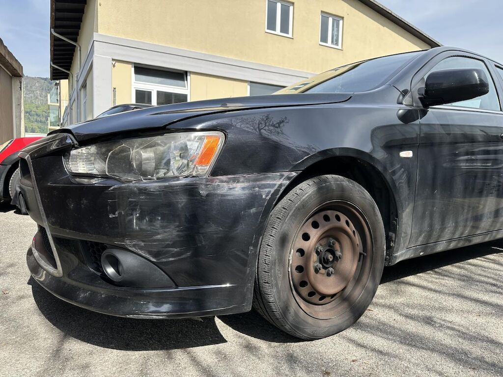Das Fahrzeug hat diverse Dellen und Lackschäden.