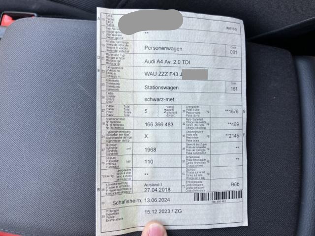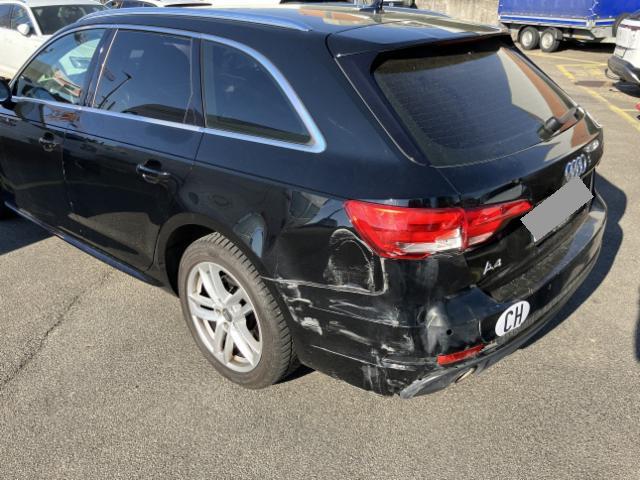 | Condition_and_Equipment | Zustand Fahrzeug ist fahrbar. Bereifung Fahrzeug wird mit Winterräder abgegeben. Sonstiges Fahrzeugdokumente vorhanden. Schlüssel Nur ein Schlüssel vorhanden. --- Links Linke Seite beschädigt. Heck Heck links eingedrückt. Seitenwand hinten links eingedrückt/ausgestaucht. Heckblech eingedrückt. Elektrik Risiko Scheinwerfer. Weitere Beschädigungen Endschalldämpfer evt. deformiert. Stossfänger vorne verkratzt. Leichte Kratzer um das Fahrzeug. Seitenscheibe hinten rechts Folie löst sich. Heckleuchte gerissen. --- Serienaustattung Deaktivierung Beifahrerairbag/ Isofix Kindersitzverank. V+H Aussenspiegel elektrisch verstellbar und heizbar Airbag Fahrer und Beifahrerseite Seitenairbag Fahrer und Beifahrerseite Servotronic Seitliches Kopfairbagsystem SIDEGUARD Radschrauben mit Diebstahlsicherung Dachreling schwarz Reifendruck-Kontrollsystem RDK Xenon-Plus Scheinwerfer ABS und EBV Elektr. Bremskraftverteilung ESP Elektronisches Stabilitätsprogramm Netztrennwand Dieselpartikelfilter DPF Radioempfang digital DAB Klimaautomat Fahrerinformationssystem Fussmatten vorn und hinten Multifunktions-Ledersportlenkrad Licht- und Regensensor Rücksitzlehne geteilt umklappbar Audi drive select (Fahrzeugcharakteristik) Gepäckraumklappe elektrisch öffnend und schliessend Bluetooth Schnittstelle Stop + Start System Keine Gewähr auf die Angaben der Serienausstattungen Gepäckraumabdeckung elektrisch MMI Radio plus Audi connect Notruf & Service Sonderausstattung Tempostat Dachreling blank Aussenspiegel elektrisch anklappbar Komfort-Mittelarmlehne vorne Pack Glanz Park-System plus vorne + hinten Klimaautomat plus 3-Zonen AdBlue Tank |