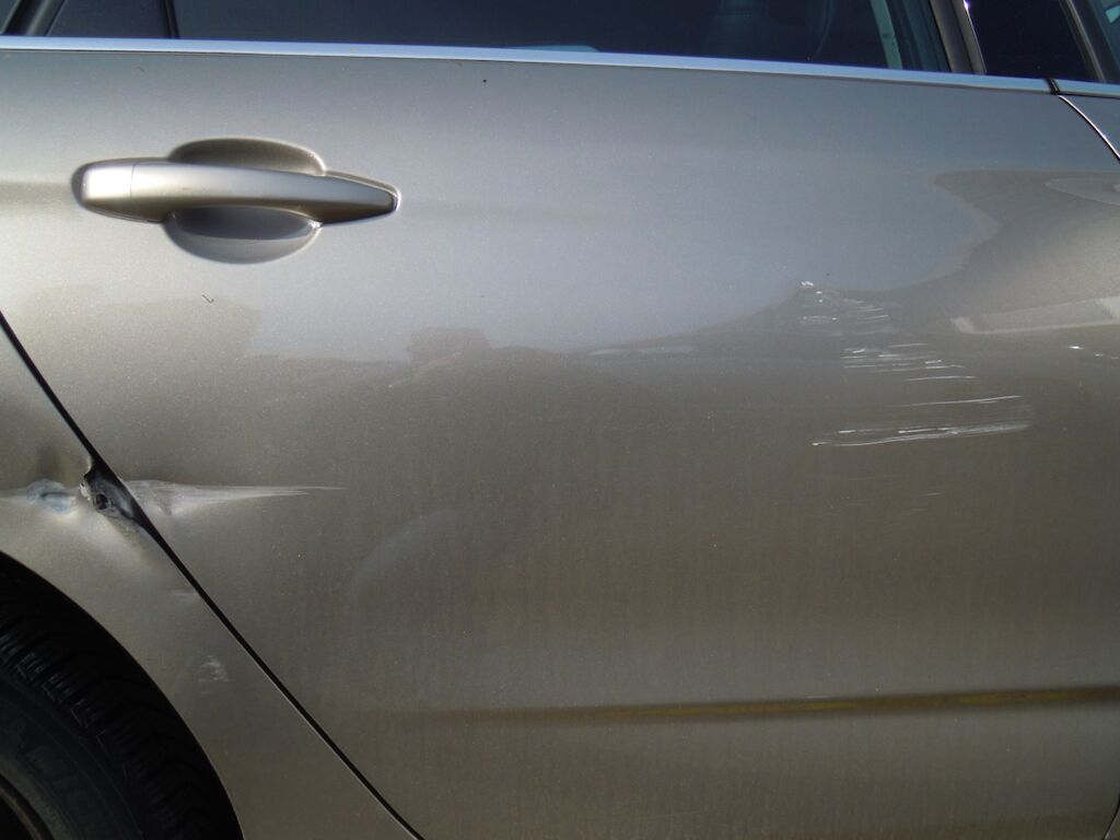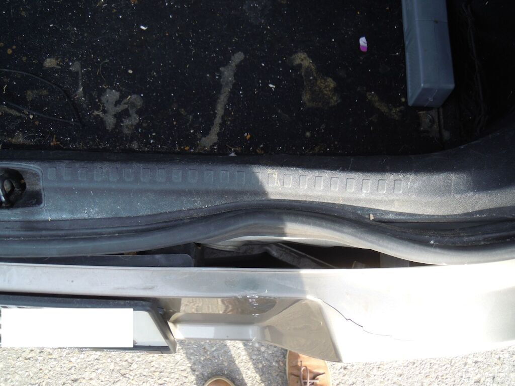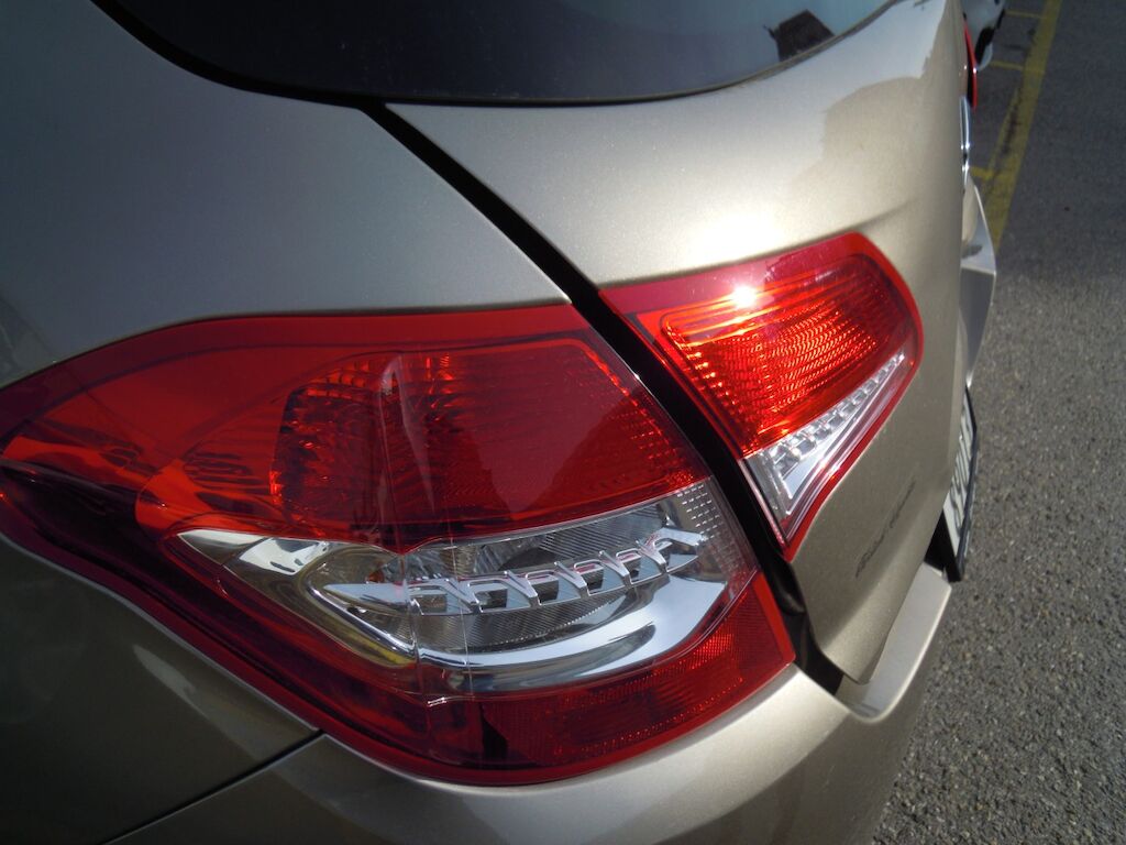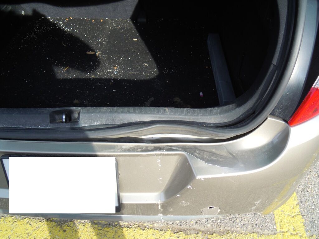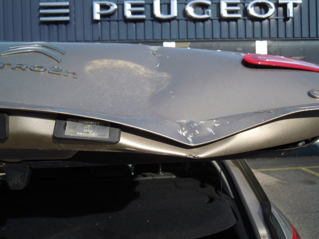 Dommage zone arrière: Hayon fortement déformé, feu intérieur droit, pare-chocs et moulure cassés, tôle de jupe, renfort et traverse enfoncés.