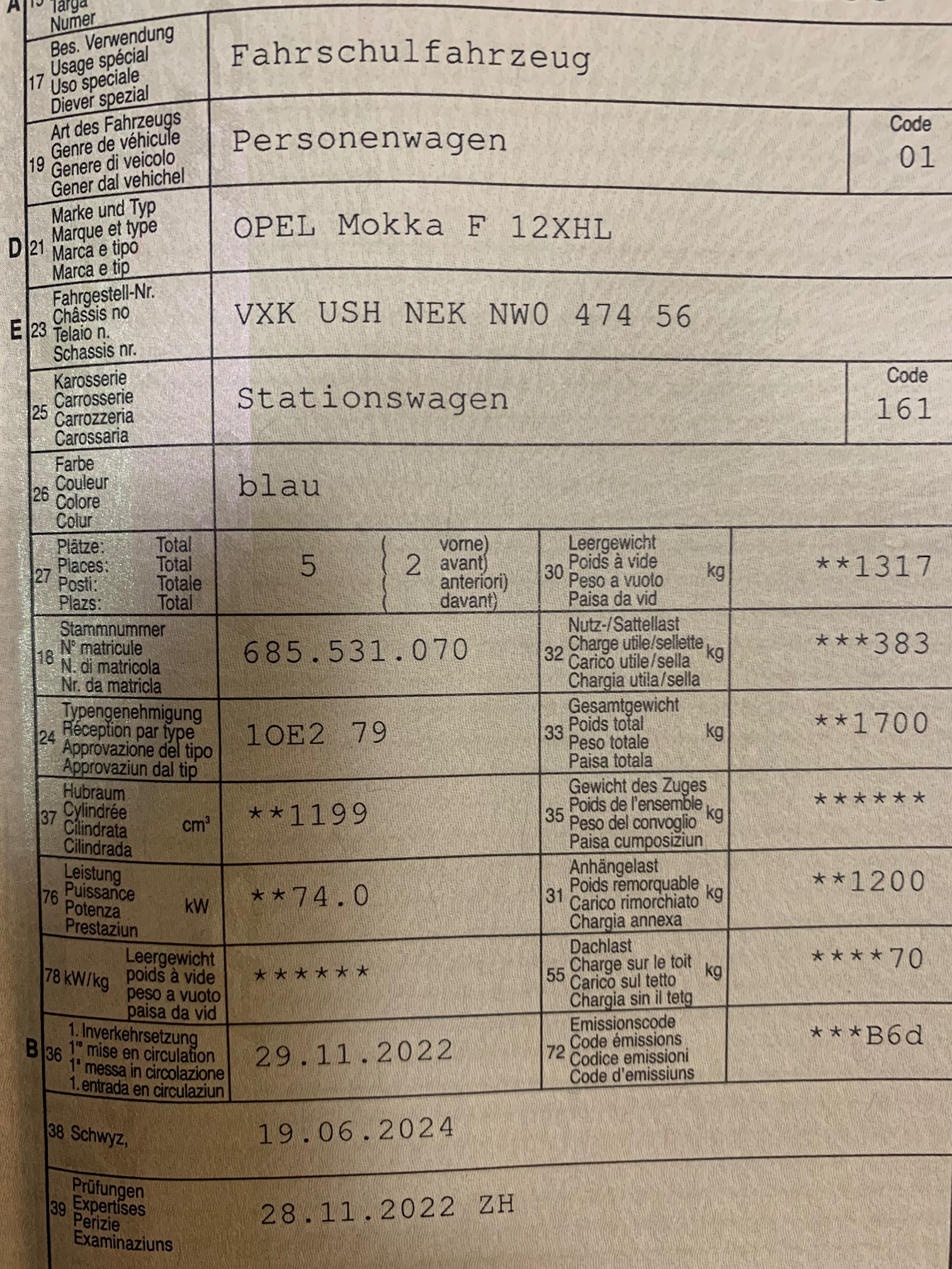 | Kommentar | Opel Garantieverlängerung FlexCar Basic 5 Jahre/200'000km was zuerst eintrifft, FAHRSCHULAUTO mit Doppelpedalen, läuft und schaltet einwandfrei, Service im Mai 2026 fällig, Sommerreifen nur noch knapp genügend. Am Fahrzeug wurde kein Werkstatttest gemacht (Für sichtbare oder nicht sichtbare Mängel wird nicht gehaftet). Wir testen und kontrollieren nicht alle Funktionen vom Fahrzeug. Das Risiko liegt somit vollumfänglich beim Käufer. Um Missverständnisse zu vermeiden kann das Fahrzeug auf Voranmeldung besichtigt und getestet werden, sollten Sie davon bewusst kein Gebrauch machen dann liegt die Verantwortung bei Ihnen. Nachdem der Höchstbietende den Zuschlag erhalten hat, gibt es keine Nachverhandlung, auch wenn nicht deklarierte Mängel zum Vorschein kommen sollten. Technische Mängel im Ausweis. Ab Platz ohne Garantie, Wandelung und Minderung werden wegbedungen. |