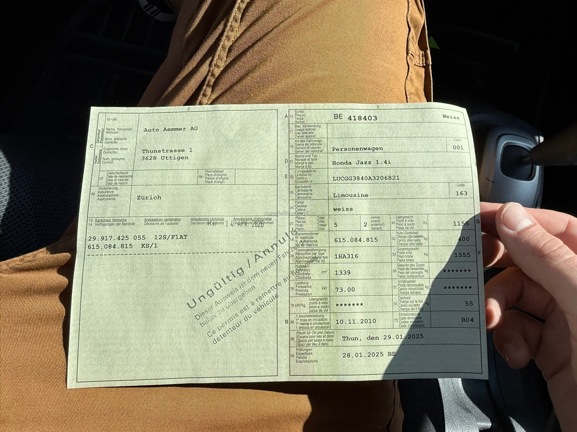 | Kommentar | Ehemaliges Ersatzfahrzeug von unserer Werkstatt Läuft und fährt sich gut Hagelschaden; Diverse Roststellen; Diverse Kratzer und Dellen Service fällig; 4-fach bereift Beschriftung muss nach Kauf selbst entfernt werden Ohne jede Garantie. Zustand gemäss Bilder. Ungereinigt ab Platz. Das Fahrzeug kann Kratzer und Dellen aufweisen. Für sichtbare und unsichtbare Mängel wird keine Haftung übernommen. Kauf auf eigenes Risiko. Jede Gewährleistung, soweit nach Gesetz möglich, wird wegbedungen. Insbesondere sind Wandelung und Minderung ausgeschlossen. |