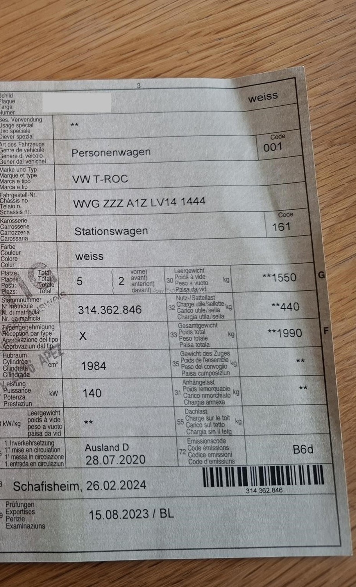 | VIN | WVGXXX |