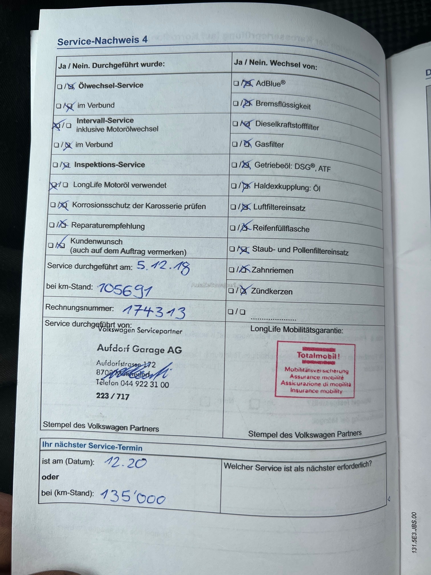 | Kommentar | Am Fahrzeug wurde kein Werkstatttest gemacht, das heisst: Für sichtbare oder nicht sichtbare Mängel wird nicht gehaftet. Wir testen und kontrollieren nicht alle Funktionen des Fahrzeugs. Das Risiko liegt somit vollumfänglich beim Käufer. Fahrzeug kann nach Voranmeldung vor Ort besichtigt werden. Nachdem der Höchstbietende den Zuschlag erhalten hat, gibt es keine Nachverhandlung, auch wenn nicht deklarierte Mängel zum Vorschein kommen sollten. Fahrzeug ab Platz, ohne Garantie und ohne Nachwährschaft. Wandelung und Minderung werden wegbedungen. Kauf auf eigenes Risiko. |