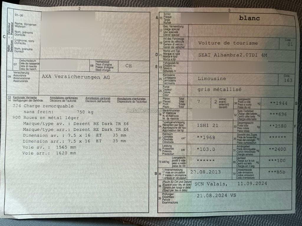 | Fahrzeugausweis | Vorhanden |