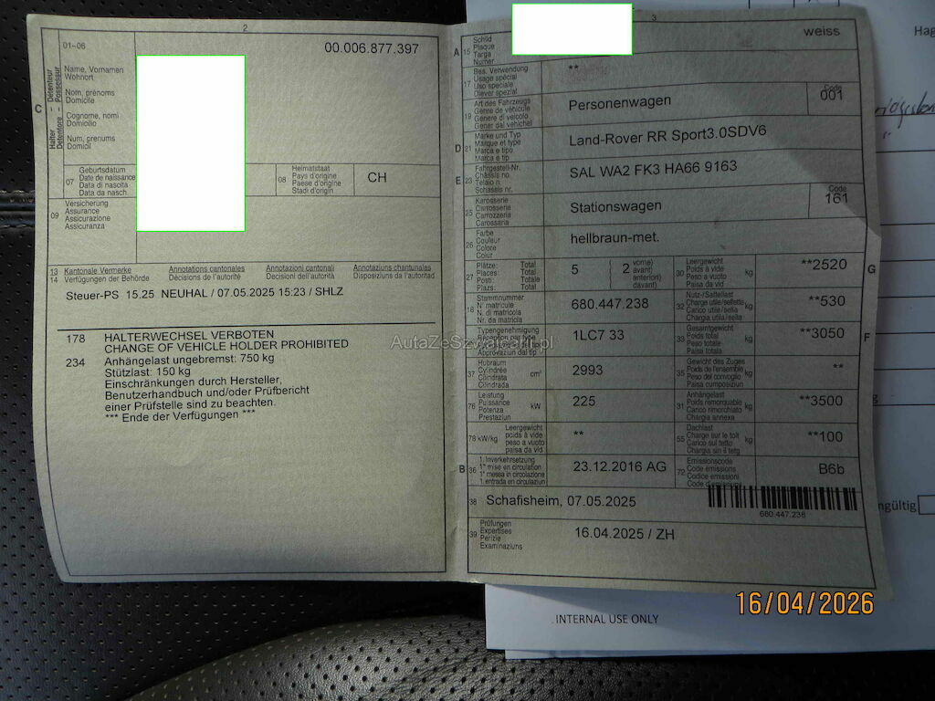 | Typ | RR SPORT 3.0SDV6 AUTOBIOG |