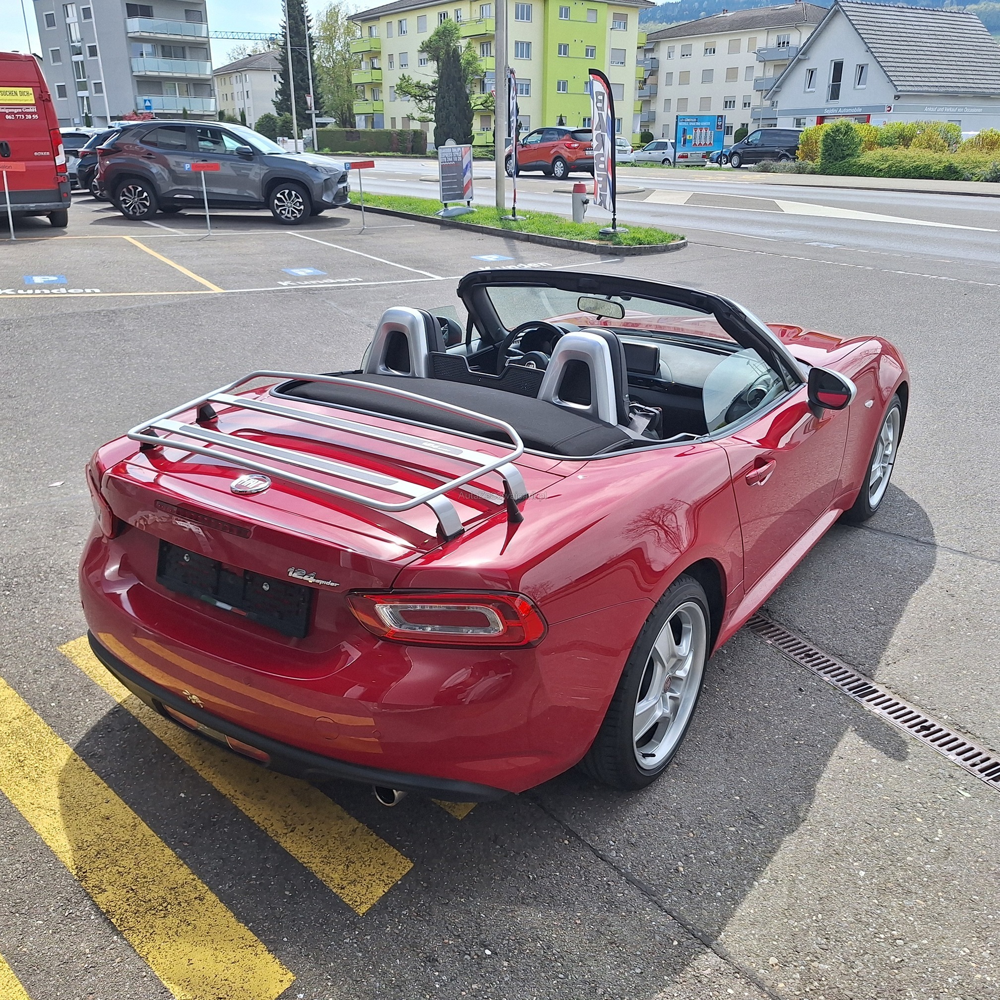 | Kommentar | Fiat 124 Spider Europa Limited Edition, Nummer 2 von insgesamt 12 Fahrzeugen in der Schweiz (Serie Anniversary Edition limitiert auf 124 Fahrzeuge weltweit). Das Fahrzeug befindet sich in Topzustand. Interieur: Leder schwarz. Inklusive Mopar-Heckträger und neuem Kofferset (siehe Beispiel-Foto). Nur Sommerbetrieb und sehr gepflegt. Der Fiat Spider erhielt beim Kauf vor einem Jahr einen umfassenden Service inkl. Wechsel Zahnriemen und neue Batterie. Er wurde seitdem nur 4’500 km gefahren. Der Spider ist jetzt frisch ab kleinem Service (Ölwechsel und Wechsel Ölfilter sowie allgemeine Kontrolle). Neue MFK auf Wunsch nach Vereinbarung. Beschreibung / Auszug aus der Pressemitteilung von Stellantis Schweiz: Das Fahrzeug ist eine Hommage an den klassischen Fiat 124 Spider, der vor genau 50 Jahren auf dem Turiner Automobilsalon 1966 präsentiert wurde. Aus Anlass des Marktstarts in der Heimat wurde eine auf exakt 124 Exemplare limitierte Sonderserie des neuen 124 Spider produziert. Die Sonderversion Fiat 124 Spider Anniversary ist an der markanten Karosseriefarbe Passione Rot zu erkennen. Das exklusive Sondermodell Fiat 124 Spider Anniversary basiert auf der Version Lusso, kennzeichnend ist darüber hinaus ein Ausstattungspaket mit adaptiven Hauptscheinwerfern in LED-Technologie sowie Licht- und Regensensor (Visibility Pack). Für aussergewöhnliches Musikvergnügen sorgt eine Audioanlage mit insgesamt neun Lautsprechern - davon vier integriert in die Kopfstützen (Bose Pack). Vervollständigt wird die Ausstattung des Sondermodells durch da schlüssellose Zugangssystem "Keyless Entry", Rückfahrkamera und Navigationssystem mit 3D-Darstellung (Premium Pack). Jedes Exemplar der Sonderserie Fiat 124 Spider Anniversary ist mit einer Seriennummer-Plakette sowie einem speziellen Fiat 124 Spider Logo im Kühlergrill versehen. Gewährleistung oder Garantie, Nachverhandlung und Rücknahme der Ware sind ausgeschlossen. |
