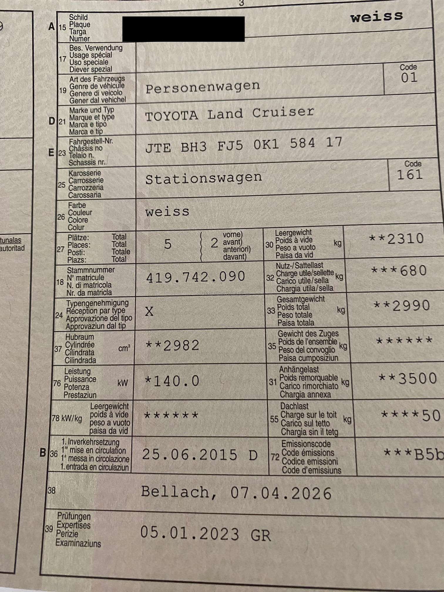 | Letzte Inspektion | 2023-01-01 |