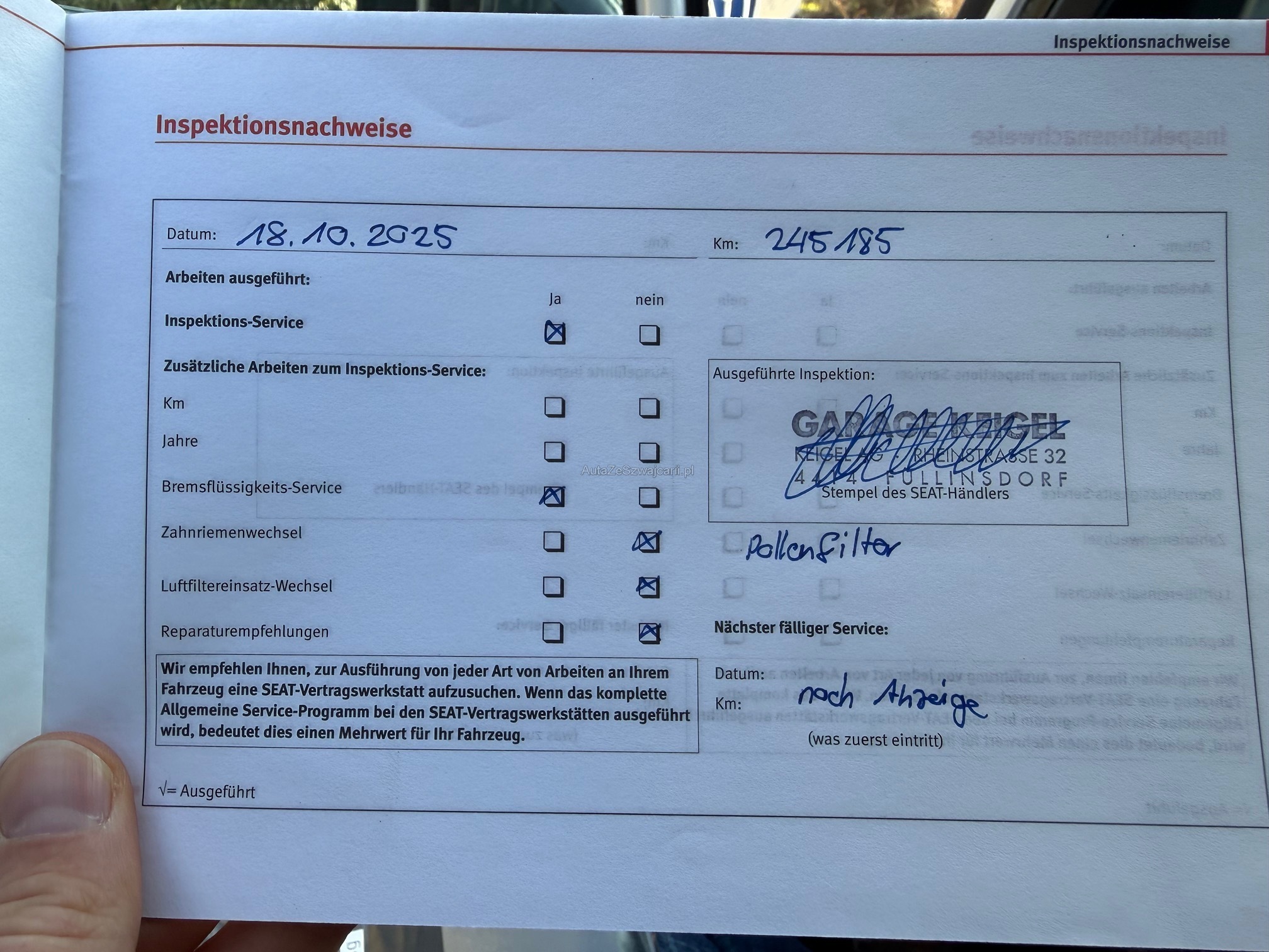 | Zahnriemen gewechselt | No |