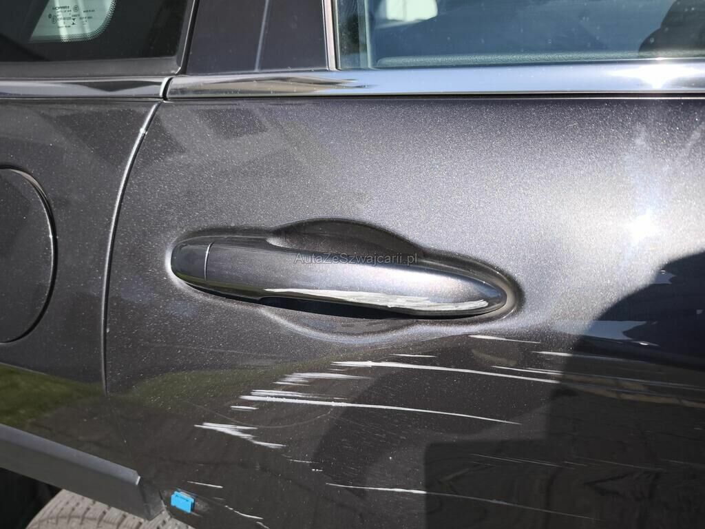 Beschädigt, deformiert und/oder gestaucht sind die Türe hinten rechts, der Türgriff rechts und die Abdeckungen/Verbreiterungen hinten rechts.