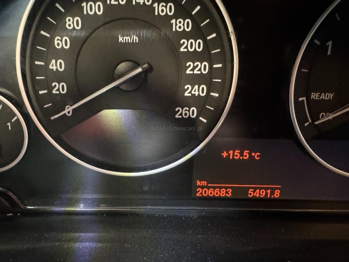 | Sonderausstattung | Sitze: Vordersitze heizbar, Navigationssystem Business, Uni-Lackierung, Räder: Bereifung mit Notlaufeigenschaften, Assist: Rückfahrkamera, BMW Garantie: 3 Jahre oder 100'000 km Gratis-Service: 10 Jahre oder 100'000 km (ab 1. Inv.), Instrumentenkombination mit erweiterten Umfängen, Innenspiegel automatisch abblendbar, Assist: Park Distance Control vorne und hinten, Tempomat mit Bremsfunktion, Innen- und Aussenspiegel automatisch abblendend, Klimatisierungsautomatik, Lenkrad: Sport-Lederlenkrad, Leichtmetallfelgen im V-Speichen-Design 395, 17J, Dekor: Interieurleisten schwarz hochglänzend mit Akzentleisten Perlglanz Chrom, Ablagenpaket |