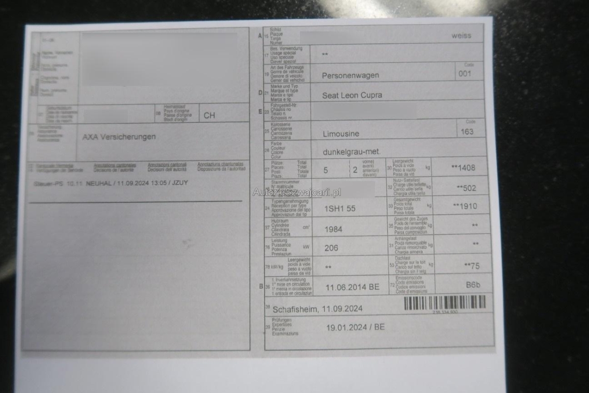 | Fahrzeugausweis | Vorhanden |