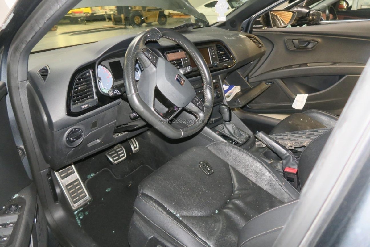 | Serienausstattung | 12-Volt-Steckdose vorne, 2 Schlüssel mit Fernbedienung, 3-Punkt-Sicherheitsgurte auf allen Plätzen, 5'' Farbdisplay Touchscreen, ABS, EBD elektronische Bremskraftverteilung, Abgedunkeltes Scheibenglas (ab B-Säule), Airbag: Beifahrerairbag deaktivierbar, Airbag: Fahrer und Beifahrer Airbag, Airbag: Knie-Airbag für Fahrer, Airbag: Seitenairbag für Fahrer und Beifahrer, Airbag: Window-Kopfairbags vorne und hinten, Applikationen schwarz glänzend, Assist: Berganfahrhilfe (Hill Holder), Assist: Tempomat, Auspuffanlage mit 2 Endrohren, Aussenspiegel in Hochglanzschwarz, Aussenspiegel mit LED Blinker, Aussenspiegel rechts und links beheizt, elektrisch verstell-/ und einklappbar, Bordcomputer, Bremszangen vorne und hinten in Rot, Differenzialsperre, Einstiegsleisten in Aluminium, Elektrische Fensterheber vorne und hinten mit Komfortbetätigung und Einklemmschutz, Elektronische Traktionskontrolle (ASR/TCS), Elektronisches Stabilitäts-Programm (ESP) mit Reifendruckkontrolle, Bremsassistent (BAS) und Sperrdifferential, Fahrwerk: Adaptive Fahrwerksregelung DCC, Gurte Höhenverstellbar vorne, Gurtkontrolle, Gurtstraffer mit Gurtkraftbegrenzer vorne, Handschuhfach Beleuchtet, Heckscheiben-Wisch-Waschanlage mit Intervall, Heckspoiler, ISOFIX Kindersitzvorrichtung, Innenleuchten LED, Innenspiegel automatisch abblendbar, Katalysator geregelt, Klima: 2-Zonen-Klimaautomatik, Kollisionsschutz-Bremssystem CMBS (Collision Mitigation Brake System), Kopfstützen hinten (3), Lackierung: Uni-Lackierung, Lenkrad längs- und höhenverstellbar, Leuchtweitenregulierung von innen, Licht- und Regensensor, Licht: Coming-home-Funktion, Licht: LED Heckleuchten, Licht: LED Scheinwerfer, Licht: LED-Tagfahrlicht, Media: DAB+ (Digital Audio Broadcasting), Media: Lautsprecher 8, Media: Mobiltelefon Freisprecheinrichtung Bluetooth, Media: Radio/CD-Player mit MP3, Media: SEAT Media System Plus, Motor Start-/Stop-Anlage, Multifunktionslenkrad in Leder mit Schaltwippen, Progressivlenkung, Reifenpannen-Set (Tire Kit), Räder: 4 Leichtmetallfelgen 19J mit Pneu, Schalthebelknauf in Leder, Sequentielles 6-Gang-Getriebe DSG mit Automatikfunktion, Servolenkung, Sitzbezüge in Alcantara, Sitze: Ablagebox unter Fahrer-und Beifahrersitz, Sitze: Mittelarmlehne vorne, Sitze: Rücksitzlehne geteilt abklappbar 1/3 - 2/3, Sitze: Sportsitze vorne, Sitze: Vordersitze höhenverstellbar, Sonnenblende Fahrer und Beifahrerseite mit beleuchtetem Spiegel, Tankdeckel-Entriegelung von innen, Teppichfussmatten vorne und hinten, Türgriffe aussen in Wagenfarbe, USB-Anschluss, Wegfahrsperre elektronisch, Wärmeschutzverglasung, Zentralverriegelung mit Fernbedienung |