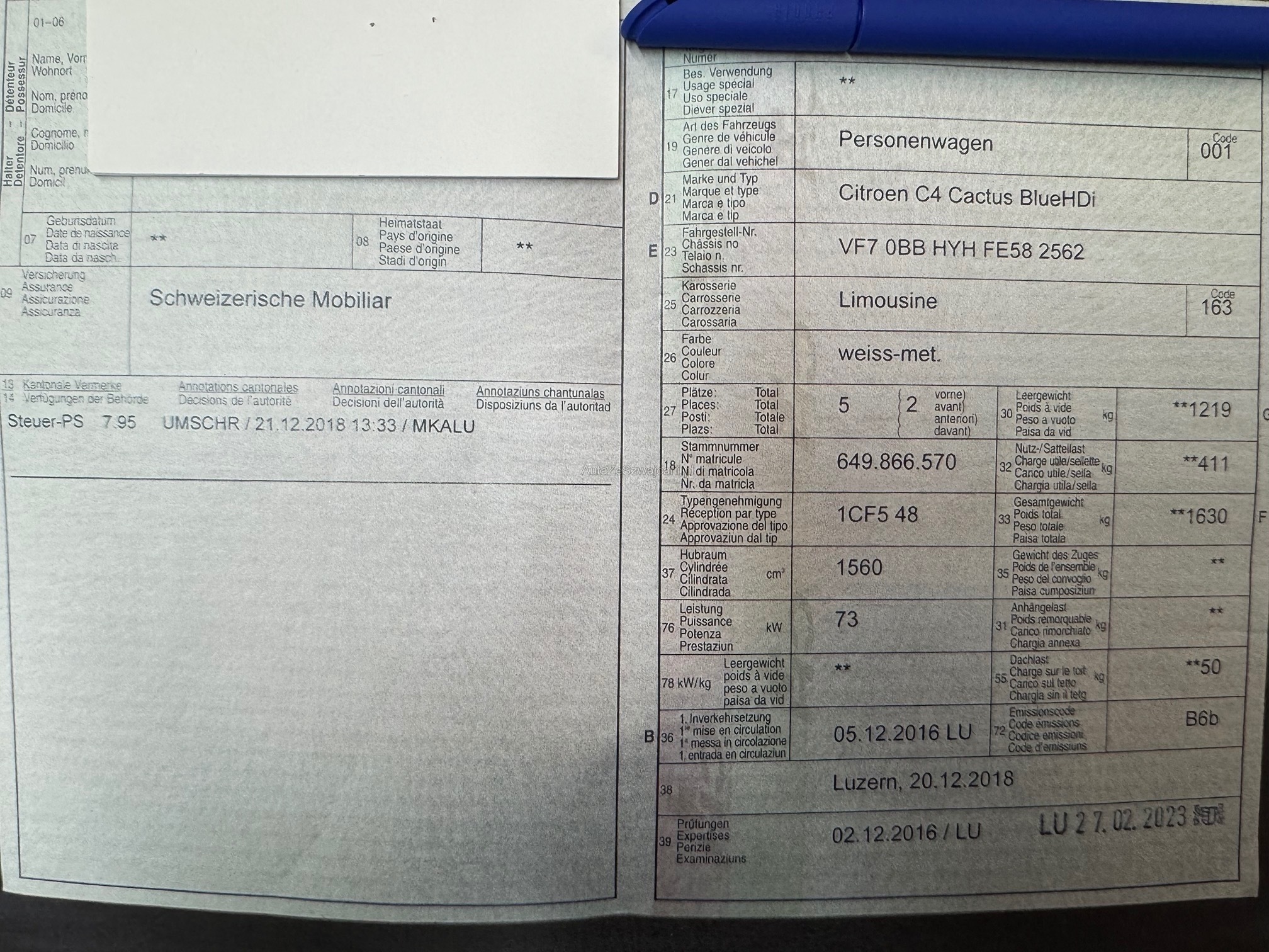 | Kommentar | Am Fahrzeug wurde kein Werkstatttest gemacht (Für sichtbare oder nicht sichtbare Mängel wird nicht gehaftet). Wir testen & kontrollieren nicht alle Funktionen vom Fahrzeug. Das Risiko liegt somit vollumfänglich beim Käufer. Nachdem der Höchstbietende den Zuschlag erhalten hat, gibt es keine Nachverhandlung, auch wenn nicht deklarierte Mängel zum Vorschein kommen sollten. Ab Platz ohne Garantie, Wandelung und Minderung werden wegbedungen. Abholung nach Zuschlag innert 3 Tagen. |