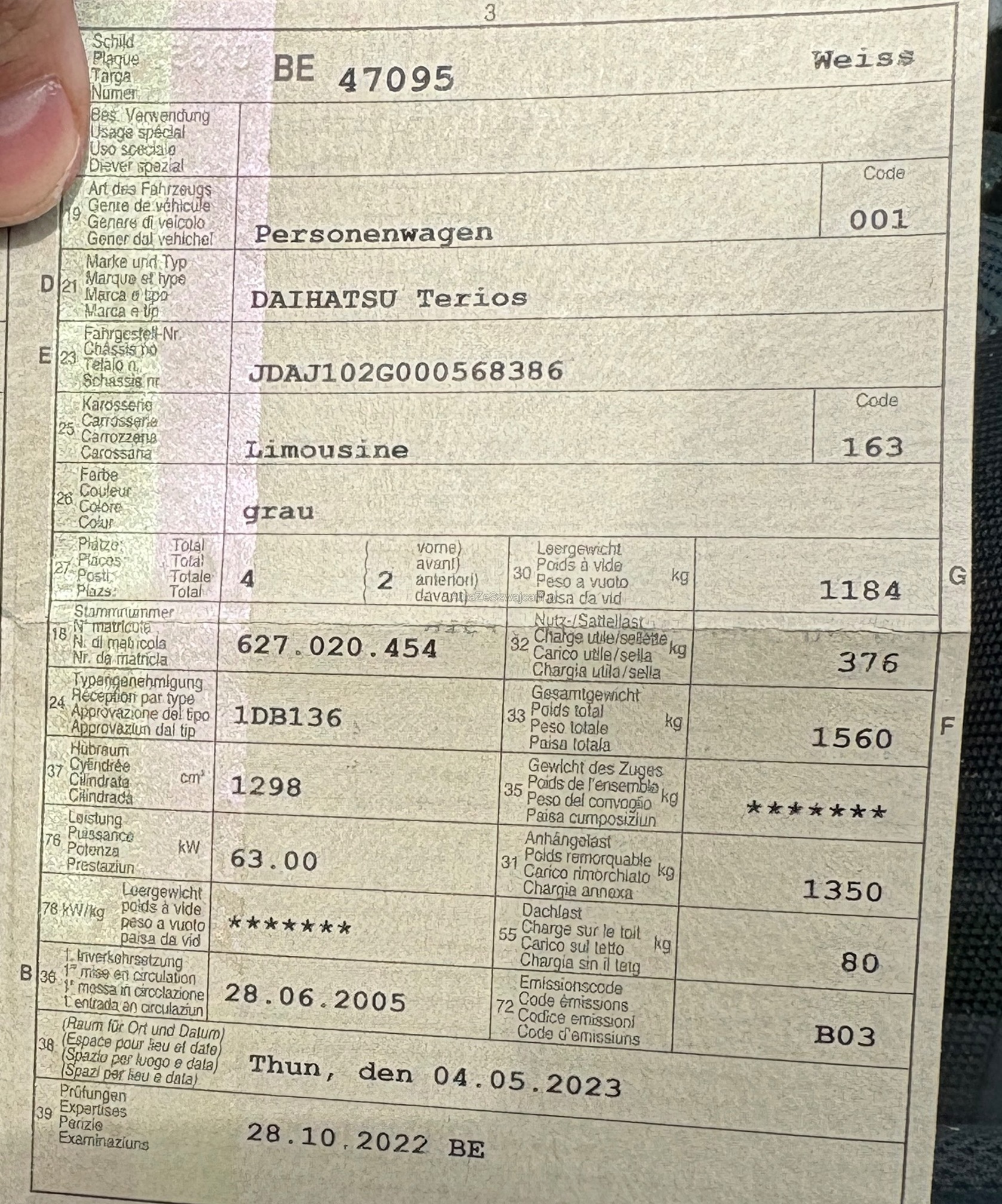 | Kommentar | Technisch guter Zustand, viel Rost Unterboden (Geschätzt 20 - 30 h), Hagelschaden. Es wurde kein abschliessender Wekstatt-Test ausgeführt. Abholung 5 Tage nach Zuschlag, danach fallen Standgebühren von CHF 30.- / Tag an. |