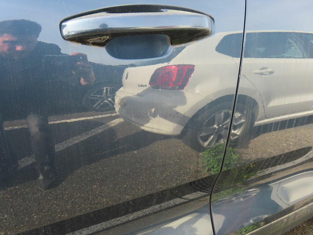 - Rétroviseur et clignotant droit, aile avant gauche, portes avant et arrière gauche et droite, porte avant gauche, pare-chocs arrière, spoiler arrière, ailes arrière, hayon : Impactés-éraflés