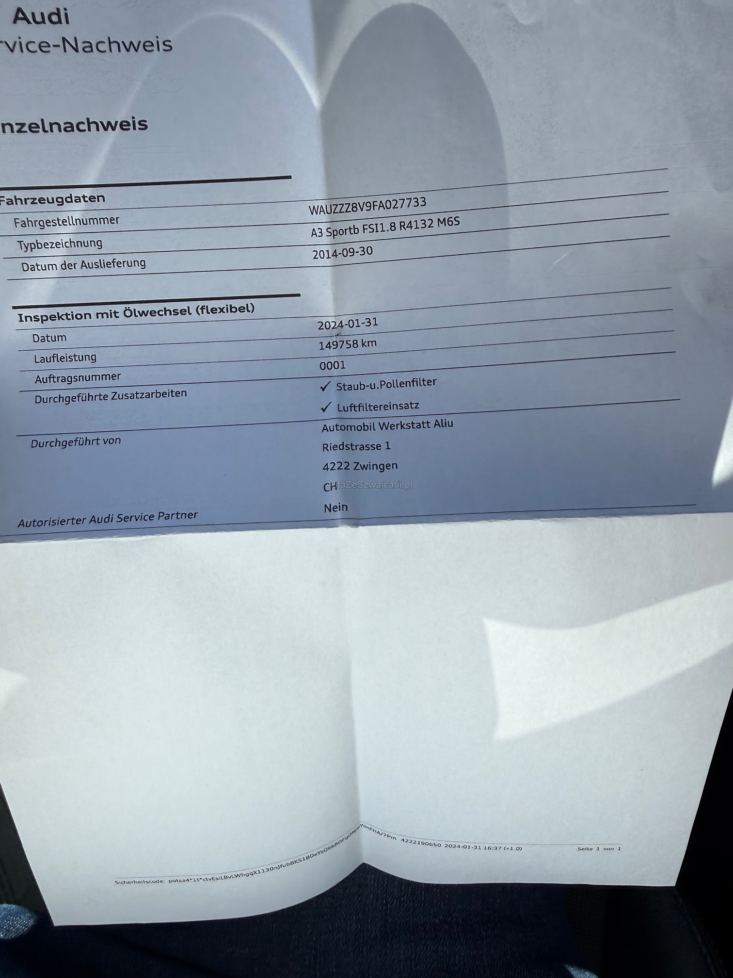 | Kommentar | Kein Werkstattest durchgeführt Kauf auf eigenes Risiko ohne jegliche Nachgewährschaft Karosserie gemäss Foto ( Beule vorne rechts Kotflügel ) |
