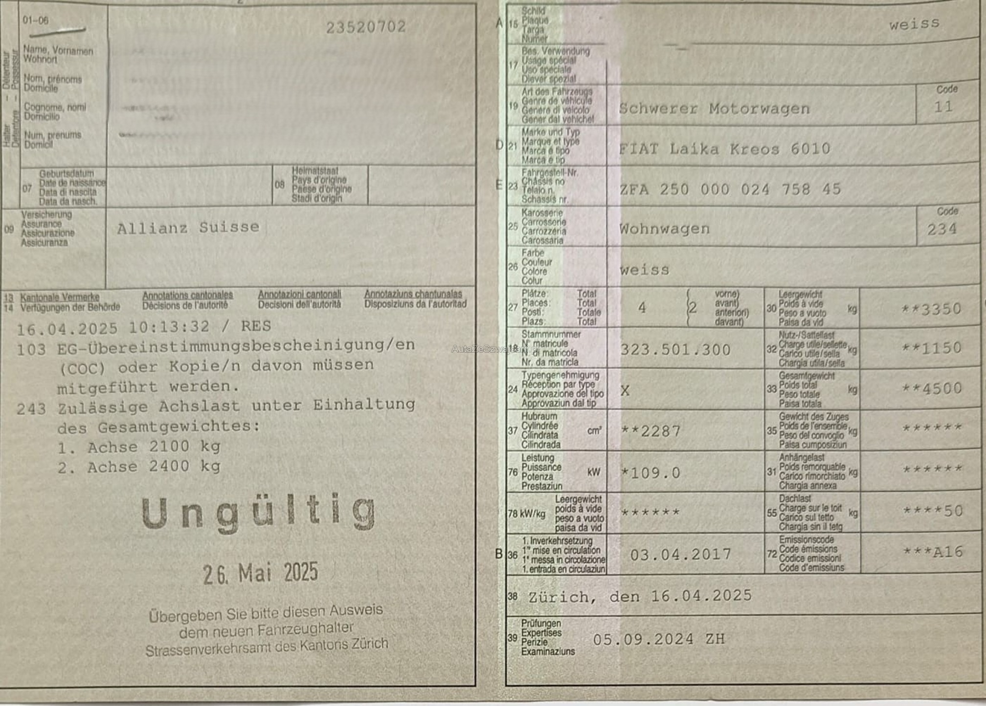 | Kommentar | - Frisch ab MFK 20.03.2026! - Carrosserie 2 kleine Dellen (Normale Gebrauchsspuren) - Fahrzeugbereifung, Fahrzeugzustand und Ausstattung gemäss Bildern. Unsere Fahrzeuge wurden keiner Prüfung unterzogen, Fahrzeugkauf auf eigenes Risiko ab Platz ohne Nachwährschaft. Das Gewährleisten für Sachmängel wird weggegangen. |
