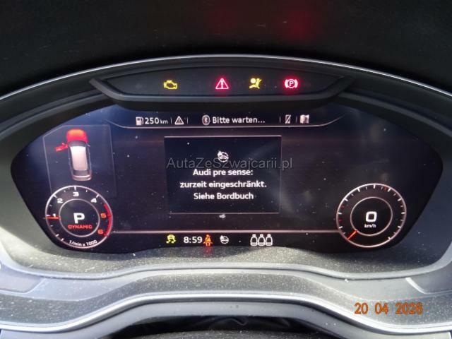 | Condition_and_Equipment | Zustand Fahrzeug ist rollbar. Schlüssel Nur ein Schlüssel vorhanden. --- Links Linke Seite beschädigt. Tür hinten links ist eingedrückt. Front Front links eingedrückt. Kotflügel vorne links eingedrückt. Frontblech/Maskenblech eingedrückt. Radhaus vorne links eingedrückt / gestaucht. Heck Seitenwand hinten links eingedrückt/ausgestaucht. Achse Risiko Vorderachse. Risiko Hinterachse. Weitere Beschädigungen alle Felgen und Pneus beschädigt, Fehlermeldung Armaturenbrett "pre sense", Scheinwerfer links, Stossfänger vorne und hinten --- Serienaustattung Deaktivierung Beifahrerairbag/ Isofix Kindersitzverank. V+H Aussenspiegel elektrisch verstellbar und heizbar Airbag Fahrer und Beifahrerseite Seitenairbag Fahrer und Beifahrerseite Servotronic Sportsitze vorne Seitliches Kopfairbagsystem SIDEGUARD Radschrauben mit Diebstahlsicherung Dachreling blank Reifendruck-Kontrollsystem RDK Dekoreinlagen in Aluminium Xenon-Plus Scheinwerfer ABS und EBV Elektr. Bremskraftverteilung ESP Elektronisches Stabilitätsprogramm Netztrennwand Dieselpartikelfilter DPF Radioempfang digital DAB Klimaautomat Fahrerinformationssystem Pack Glanz Fussmatten vorn und hinten Leichtmetallräder 17" 5-Arm Design Multifunktions-Ledersportlenkrad Licht- und Regensensor Rücksitzlehne geteilt umklappbar Audi drive select (Fahrzeugcharakteristik) Gepäckraumklappe elektrisch öffnend und schliessend Bluetooth Schnittstelle Stop + Start System Keine Gewähr auf die Angaben der Serienausstattungen Gepäckraumabdeckung elektrisch MMI Radio plus Audi connect Notruf & Service Sonderausstattung Sitzheizung für Vordersitze Tempostat Sportfahrwerk Fahrerinformationssystem mit Farbdisplay Dachreling schwarz Scheinwerfer Reinigungsanlage Kofferraum Wendematte Vordersitze elektrisch verstellbar Park-System plus vorne + hinten Multifunktions-Ledersportlenkrad 3-Speich.(unten abgeflacht) Bang & Olufsen Sound System Innenspiegel automatisch abblendbar Aussenspiegel in Farbe Schwarz Klimaautomat plus 3-Zonen Pack Exterieur S-Line MMI Navigation plus Ambientebeleuchtung Pack Sport S-Line Aussenspiegel el.verstellbar/heizbar u. anklappbar/ Memory Audi Phone Box Audi connect Matrix LED-Scheinwerfer Leichtmetallräder 19" 5-V-Speichen Titan Audi virtual cockpit Sitzbezüge in Leder/ Kunstleder Interieurelemente in Kunstleder Privacy- und Akustikverglasung Pack S-Line Black |