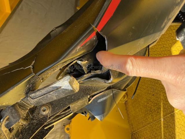 | Condition_and_Equipment | Zustand Fahrzeug muss transportiert werden (Höhe und Breite beachten). Fahrzeug ist NICHT fahrbar. Fahrzeug ist rollbar. Fahrzeug lag auf der Seite. Bereifung Fahrzeug wird mit Sommerräder abgegeben. Sonstiges Fahrzeugdokumente vorhanden. Schlüssel Nur ein Schlüssel vorhanden. --- Links Linke Seite beschädigt. Rechts Rechte Seite beschädigt. Heck Heck eingedrückt. Motor Motorstörung: Warnleuchte aktiv Achse Risiko Vorderachse. Risiko Hinterachse. Risiko Lenkung. Elektrik Risiko Steuergeräte. Risiko Scheinwerfer. Sonstige Schäden Div.Carrosserie Teile sind leicht beschädigt. Weitere Beschädigungen Zubehör: Bremshebel,Fussrasten, Leuchten, Frontcover / Scheibe, Rückspiegel. Beschädigungen siehe Fotos; Rahmen verkratzt, verbogen / alle Cover verkratz, teileweise gerissen, Motor- / Getriebegehäuse beschädigt / Auspuffblende beschädigt, Felge hinten beschädigt, Risiko Gabel, Motor läuft (Risiko), Hinterradschwinge beschädigt etc. |