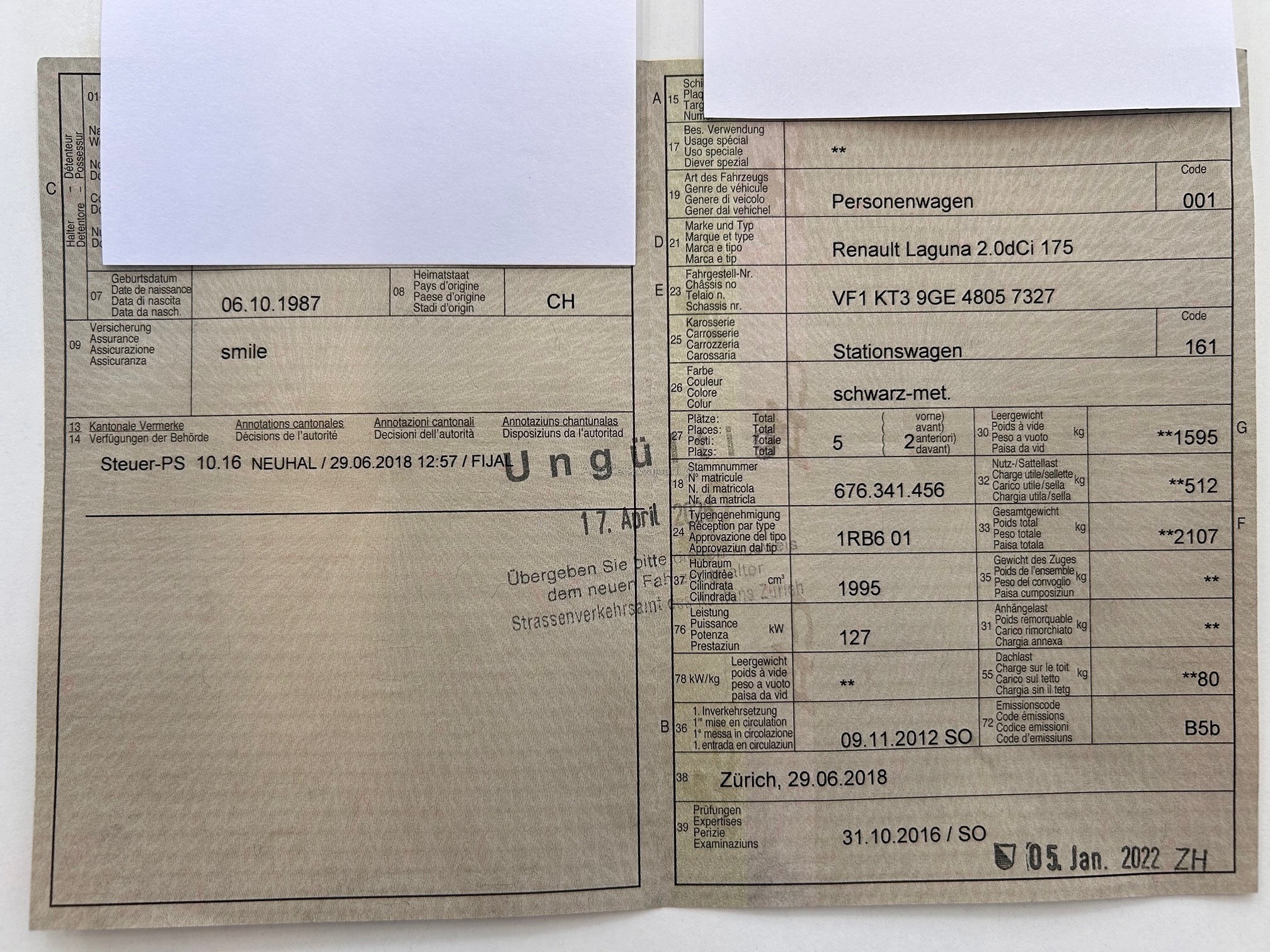 | Kommentar | Fahrzeug ab Platz! Der Wagen wurde bis anhin jeden Tag gefahren und läuft. Einige Beschädigungen rund um das Fahrzeug. Wir haben den Wagen nicht getestet. Navigation defekt. Das Fahrzeug muss 5 Tage nach Zuschlag abgeholte werden. Da der Wagen im Kundenbesitz ist, muss das Fahrzeug zwingend bei Abholung in Cash bezahlt werden. Der Wagen wird gegen Handquittung abgegeben. Keine Nachverhandlung auf Platz. |
