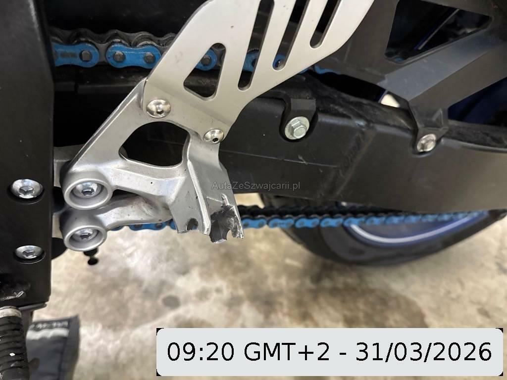 | Beschädigungen | Antrieb, Aussenspiegel links, Fussraster links, Gabelholm, Griff links, Heckverkleidung, Kupplungsgehäuse, Lenker, Motor, Motorgehäuse, Rahmen, Schutzblech vorne, Seite links, Tank, Verschalungen hinten, Verschalungen links, Verschalungen vorne, Windschutzscheibe |