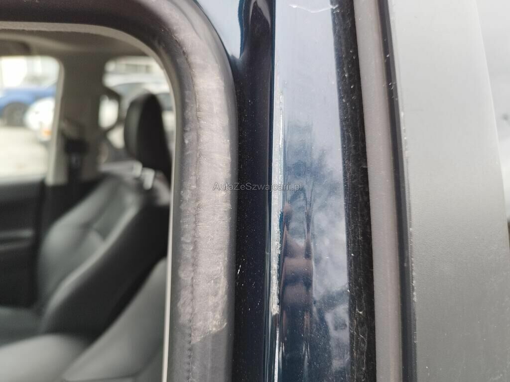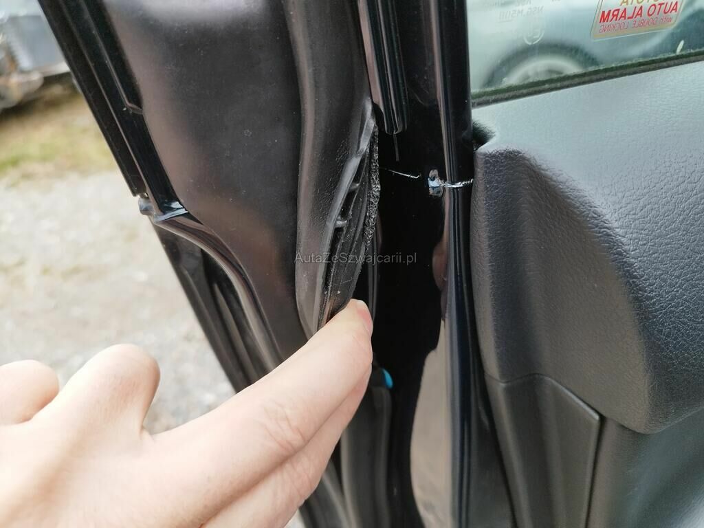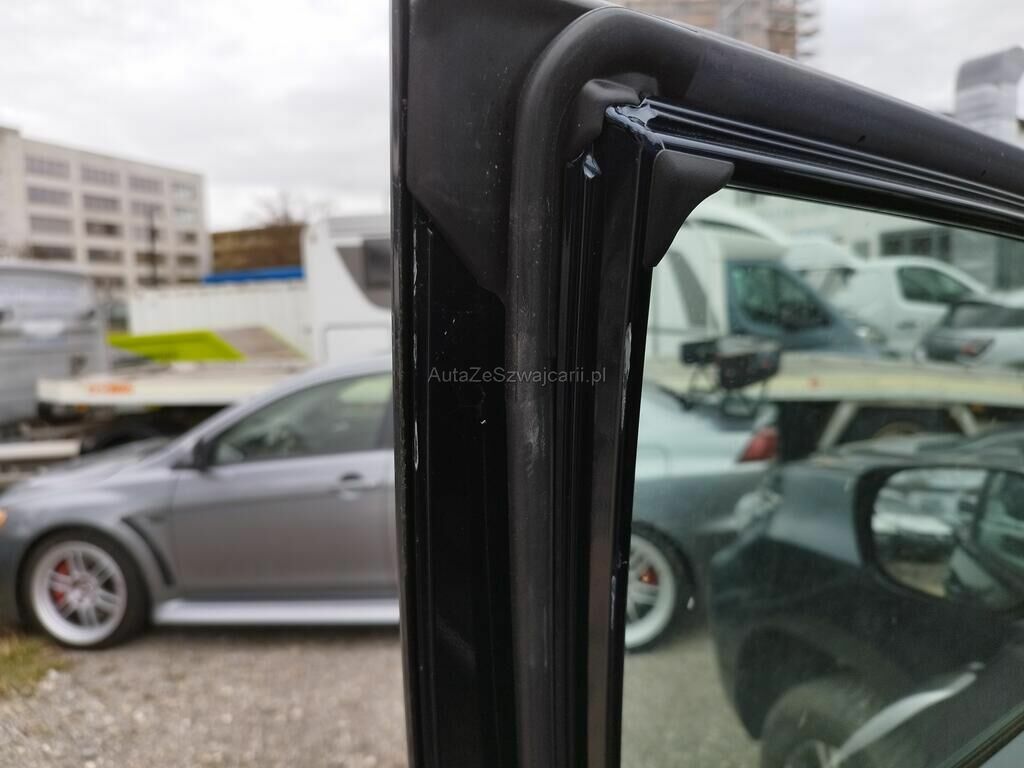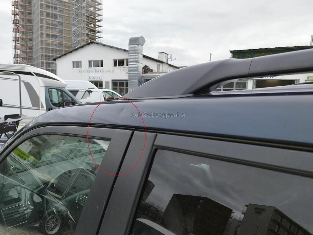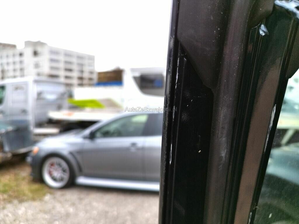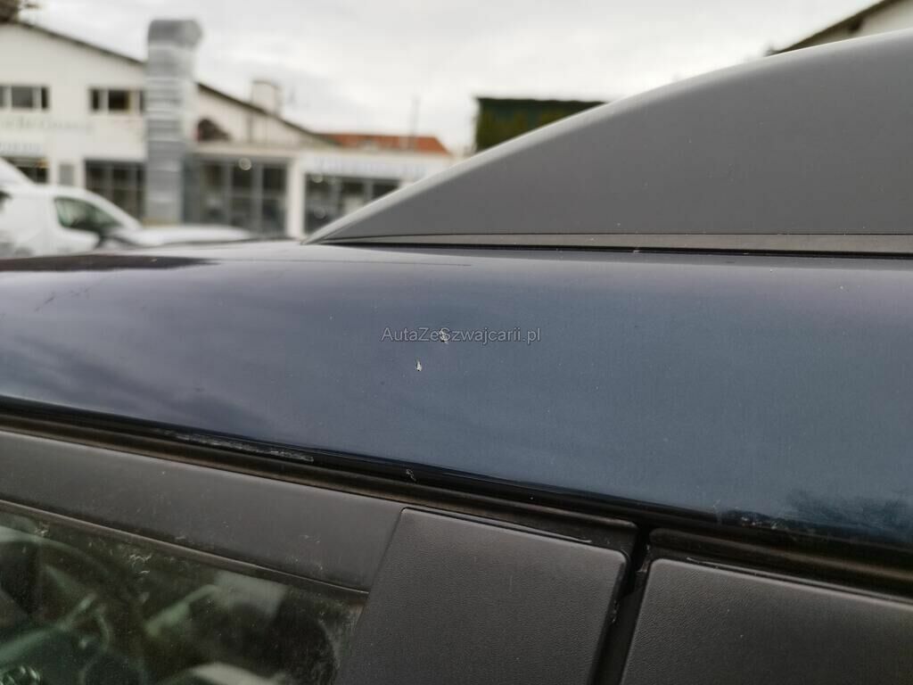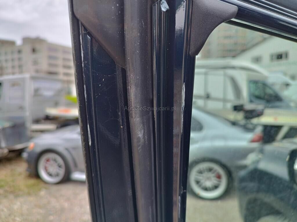 Die Türe vorne links weist Einbruchspuren auf, der Türrahmen vorne links hat Kratzspuren, der Dachrahmen links hat Kratzspuren und eine Delle, die B-Säule links hat Kratzspuren, die Türe hinten links hat einen Kratzer, der Dachrahmen rechts hat einen Kratzer, das Typenschild wurde gewechselt.