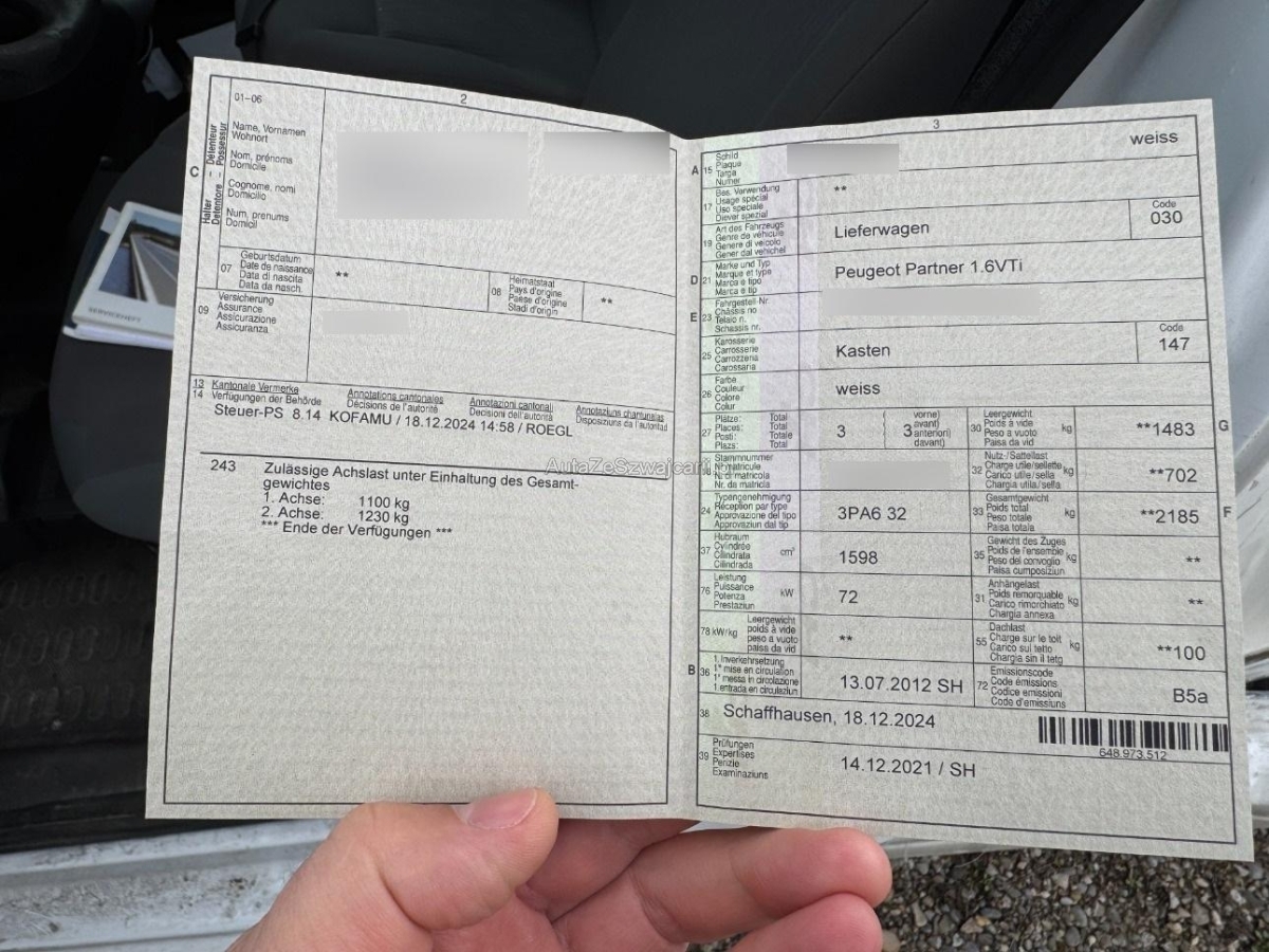 | Fahrzeugausweis | Vorhanden |