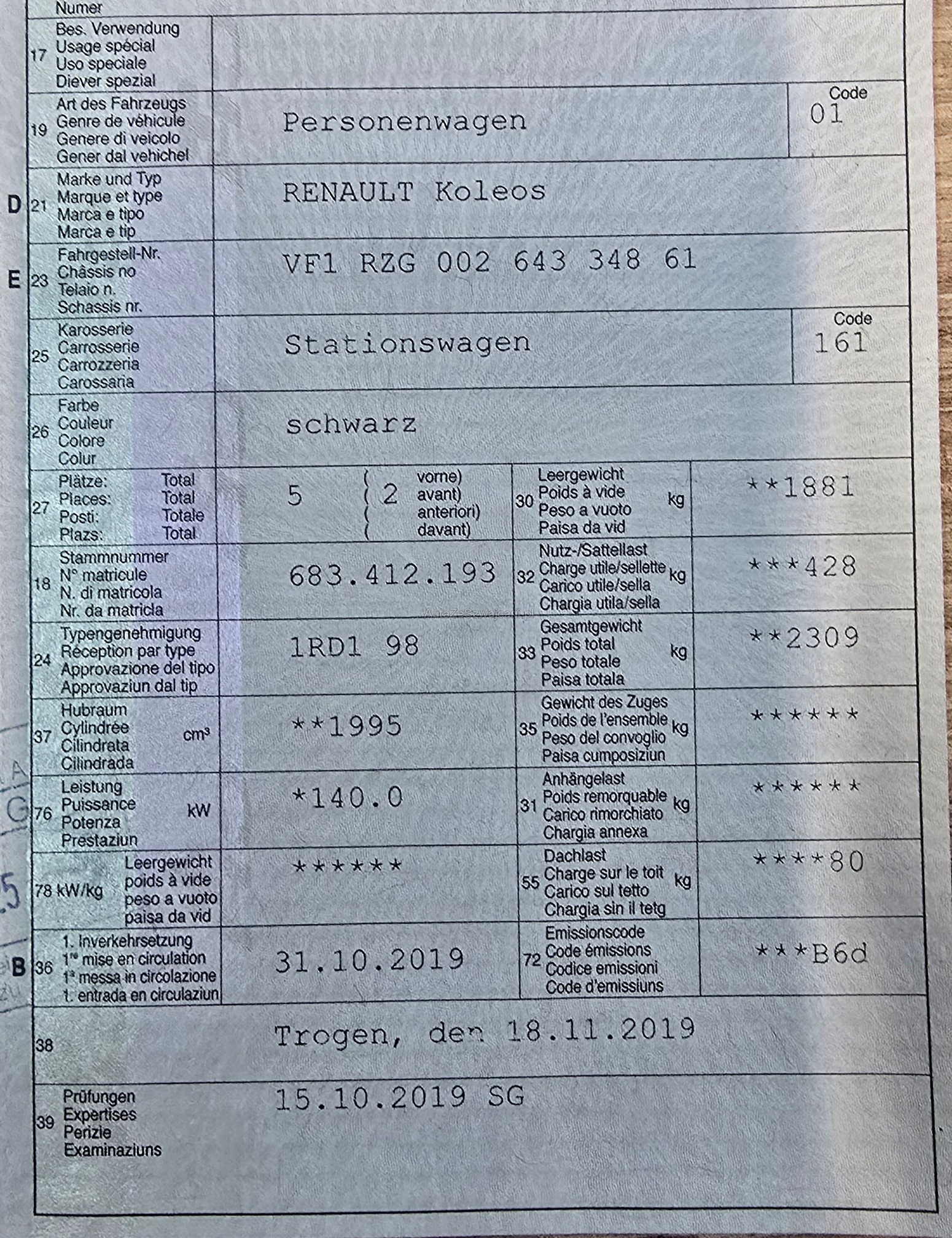 1. rejestracja: 31 października 2019